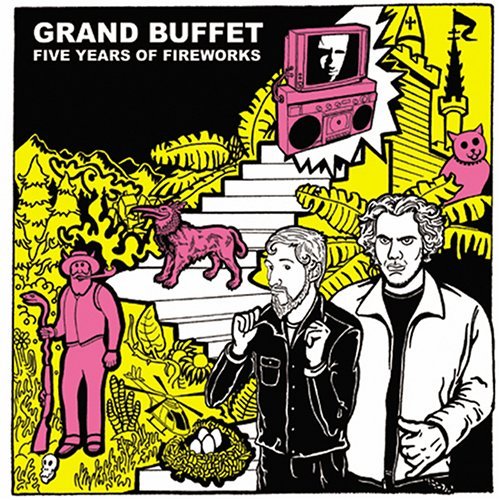 Five Years Of Fireworks is a greatest hits album by a group you’ve probably never heard of. Since the late 90’s, the Pittsburgh duo Grand Buffet have been honing their deeply silly strain of indie rap in obscurity. And for their first national release available somewhere other than the group’s own website and live shows, they’ve assembled a package including a DVD and a retrospective collection featuring highlights from the 2000 album Sparkle Classic and the trilogy of EPs Undercover Angels (2001), Cigarette Beach (2002) and Pittsburgh Hearts (2003).