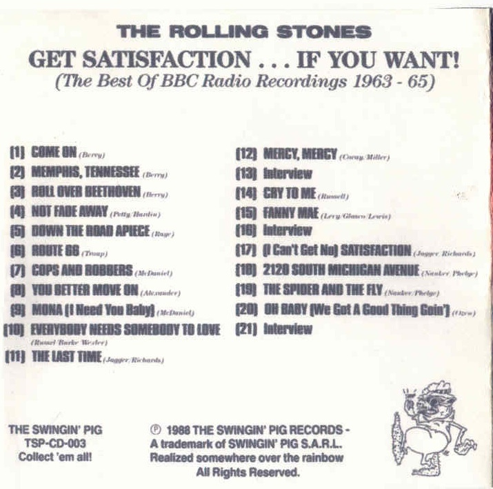 GET SATISFACTION…IF YOU WANT ( The Swingin’ Pig Records TSP-CD-003 )