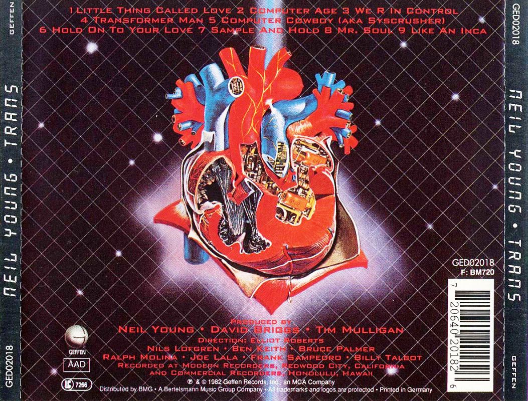 When it was released, Trans was Neil Young’s most baffling album. He had employed a vocoder to synthesize his voice on five of the album’s nine tracks, resulting in disembodied singing, the lyrics nearly impossible to decipher without the lyric sheet. And even when you read the words, "Computer Age," "We R in Control," "Transformer Man," "Computer Cowboy," and "Sample and Hold" seemed like a vague mishmash of high-tech jargon. Later, Young would reveal that some of the songs expressed a theme of attempted communication with his disabled son, and in that context, lines like "I stand by you" and "So many things still left to do/But we haven’t made it yet" seemed clearer. But the vocoder, which robbed Young’s voice of its dynamics and phrasing, still kept the songs from being as moving as they were intended to be. And despite the crisp dance beats and synthesizers, the music sounded less like new Kraftwerk than like old Devo. A few more conventional Young songs (left over from an earlier rejected album) seemed out of place. Trans had a few good songs, notably "Sample and Hold" (which seemed to be about a computer dating service for robots), a remake of "Mr. Soul," and "Like an Inca" (an intended cross between "Like a Hurricane" and "Cortez the Killer"?), but on the whole it was an idea that just didn’t work.