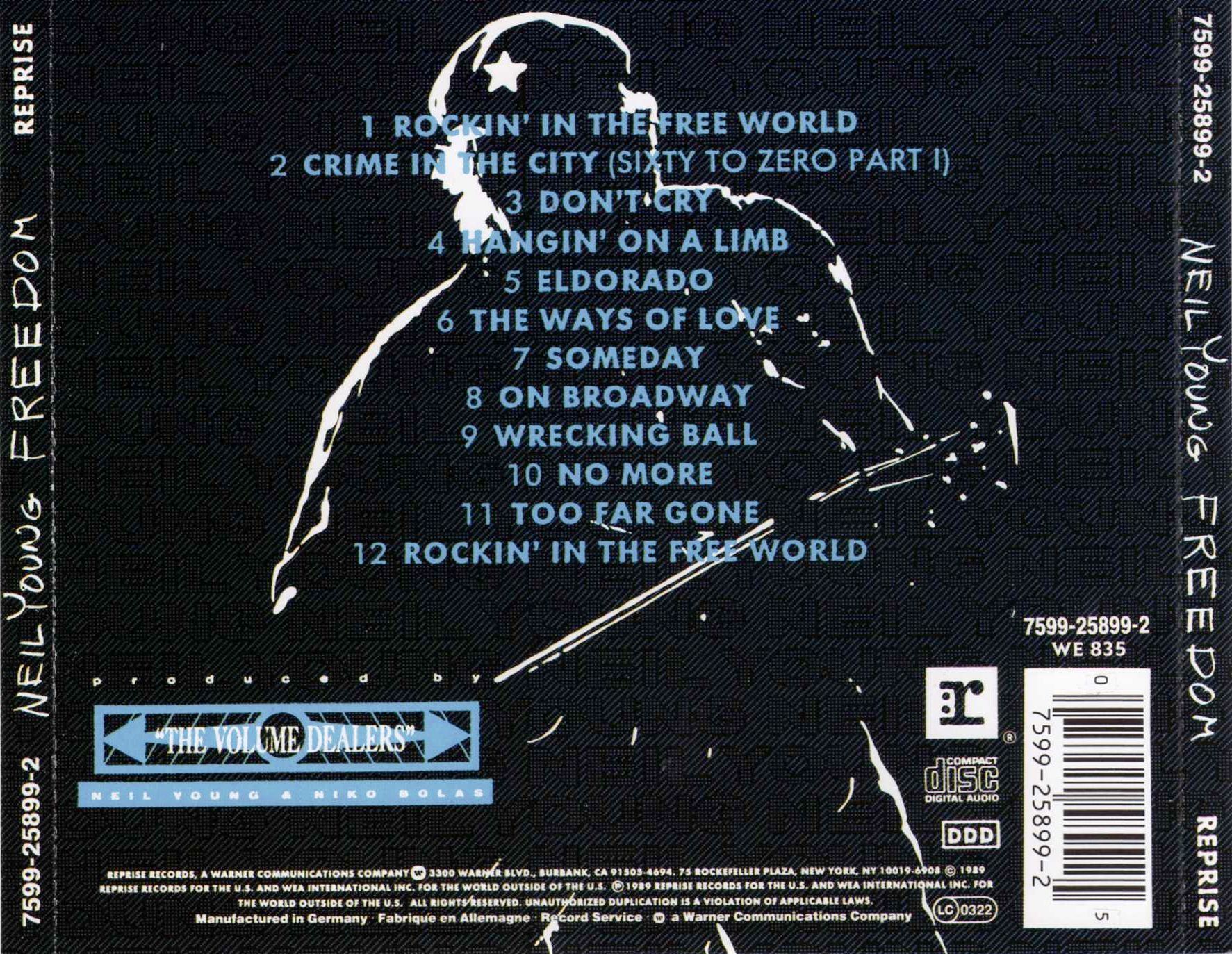 Neil Young is famous for scrapping completed albums and substituting hastily recorded ones in radically different styles. Freedom, which was a major critical and commercial comeback after a decade that had confused reviewers and fans, seemed to be a selection of the best tracks from several different unissued Young projects. First and foremost was a hard rock album like the material heard on Young’s recent EP, Eldorado (released only in the Far East), several of whose tracks were repeated on Freedom. On these songs — especially "Don’t Cry," which sounded like a song about divorce, and a cover of the old Drifters hit "On Broadway" that he concluded by raving about crack — Young played distorted electric guitar over a rhythm section in an even more raucous fashion than that heard on his Crazy Horse records. Second was a follow-up to Young’s previous album, This Note’s for You, which had featured a six-piece horn section. They were back on "Crime in the City" and "Someday," though these lengthy songs, each of which contained a series of seemingly unrelated, mood-setting verses, were more reminiscent of songs like Bob Dylan’s "All Along the Watchtower" than of the soul standards that inspired the earlier album. Third, there were tracks that harked back to acoustic-based, country-tinged albums like Harvest and Comes a Time, including "Hangin’ on a Limb" and "The Ways of Love," two songs on which Young dueted with Linda Ronstadt. There was even a trunk (or, more precisely, a drunk) song, "Too Far Gone," which dated from Young’s inebriated Stars ‘n Bars period in the ’70s. While one might argue that this variety meant few Young fans would be completely pleased with the album, what made it all work was that Young had once again written a great bunch of songs. The romantic numbers were carefully and sincerely written. The long imagistic songs were evocative without being obvious. And bookending the album were acoustic and electric versions of one of Young’s great anthems, "Rockin’ in the Free World," a song that went a long way toward restoring his political reputation (which had been badly damaged when he praised President Reagan’s foreign policy) by taking on hopelessness with a sense of moral outrage and explicitly condemning President Bush’s domestic policy. Freedom was the album Neil Young fans knew he was capable of making, but feared he would never make again.
