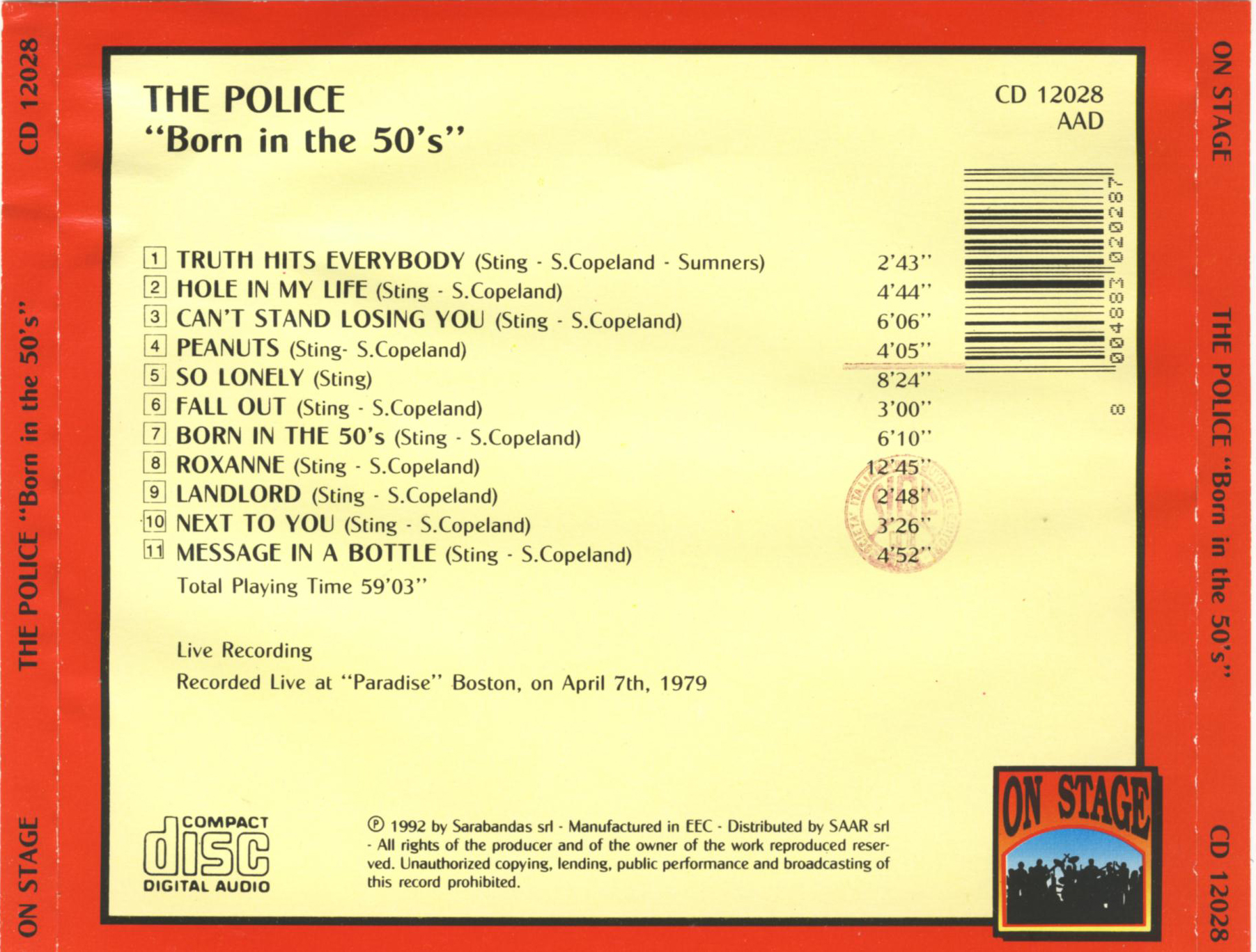 Recorded Live at the "Paradise" in Boston, MA
