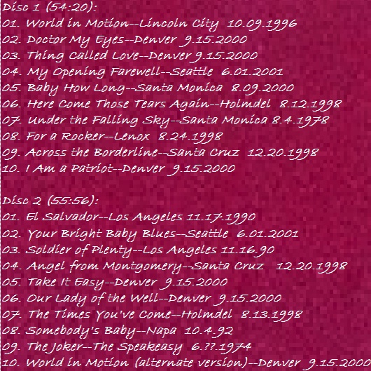 Overall sound quality is excellent. There are a handful of nearly unnoticeable skips during a few seconds of “Take It Easy” and the recording of “Somebody’s Baby” could be a little less “muddy.”