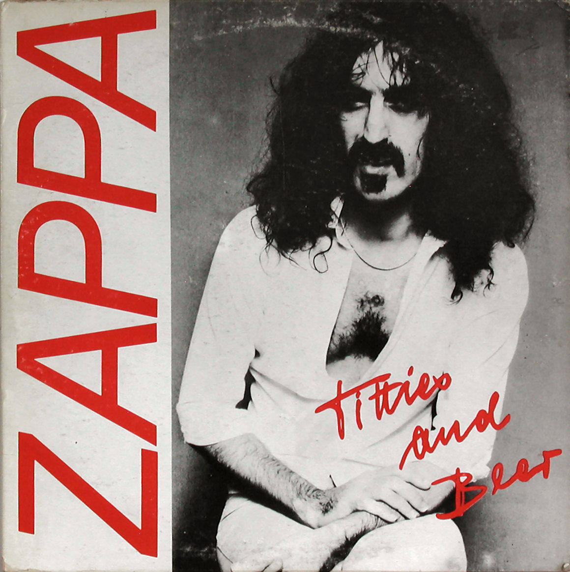 8. Le Serviette Noir ["Black Napkins"]One front cover variant has a black & white photo of Zappa sitting down. Another shot from the same photo session was used on a Kyoto bootleg called Black Napkins. "Titties & Beer" had extra lyrics on this tour, which were never released officially.