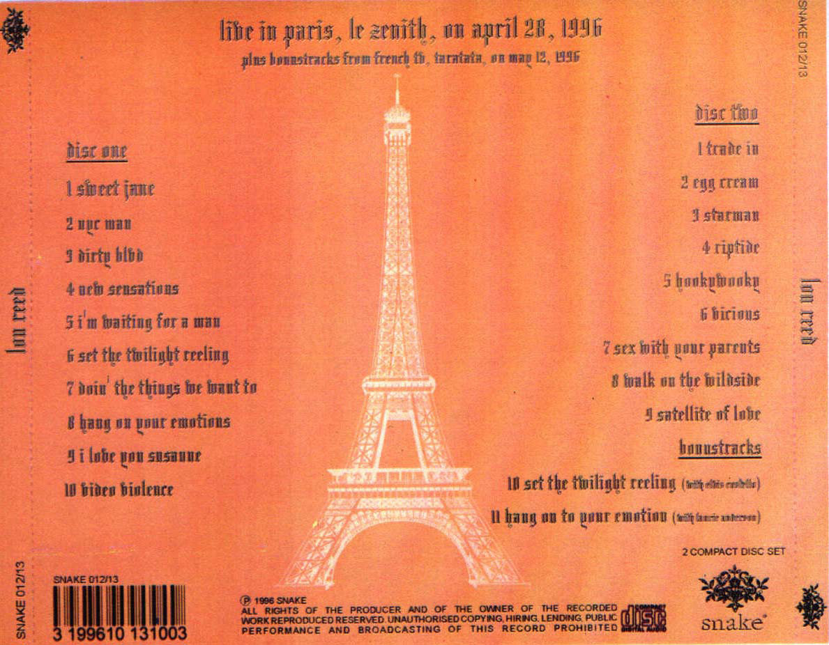 Bonustracks are from french TV, Taratata, May 12, 1996