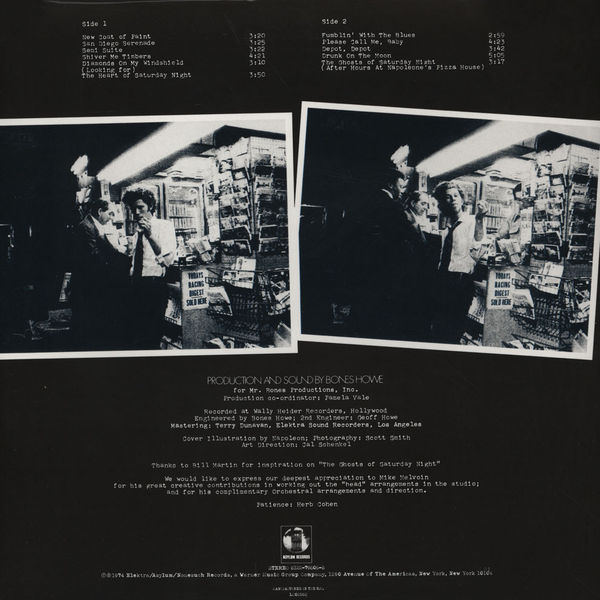 If Closing Time, Tom Waits’ debut album, consisted of love songs set in a late-night world of bars and neon signs, its follow-up, The Heart of Saturday Night, largely dispenses with the romance in favor of poetic depictions of the same setting. On “Diamonds on My Windshield” and “The Ghosts of Saturday Night,” Waits doesn’t even sing, instead reciting his verse rhythmically against bass and drums like a Beat hipster. Musically, the album contains the same mixture of folk, blues, and jazz as its predecessor, with producer Bones Howe occasionally bringing in an orchestra to underscore the loping melodies. Waits’ songs are sometimes sketchier in addition to being more impersonal, but “(Looking For) The Heart of Saturday Night” and “Semi Suite” are the equal of anything on Closing Time. Still, with lines such as “…the clouds are like headlines/Upon a new front page sky” and references to “a 24-hour moon” and “champagne stars,” Waits’ imagery is beginning to get florid, and in material this stylized, the danger of self-parody is always present.