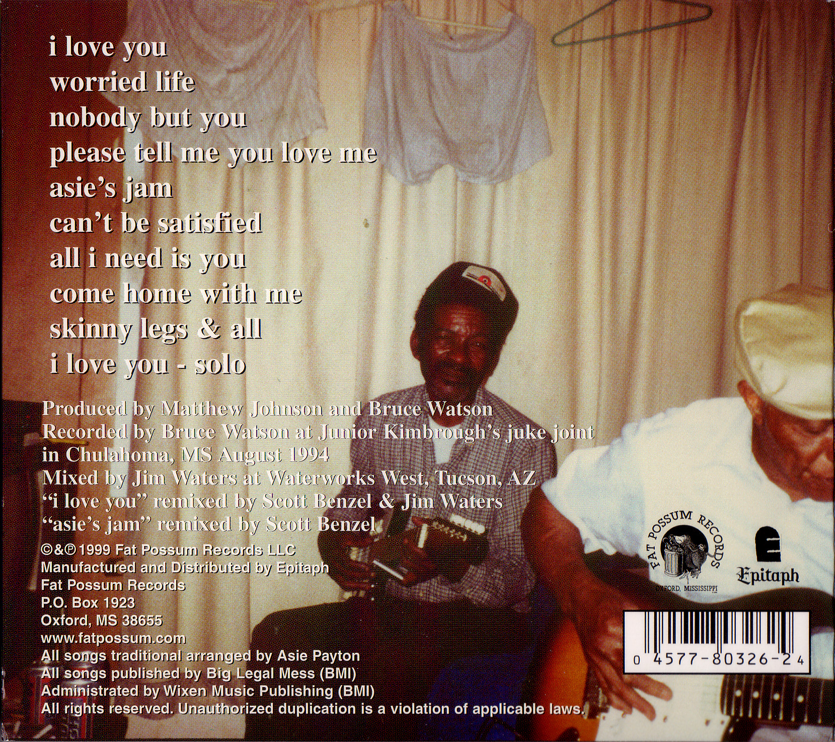 Asie Payton’s song, “I love you” from the album, “Worried” produced by Fat Possum Records, was used in the closing credits of “The Badge”, 2002 film starring Billy Bob Thorton and Patricia Arquette. Several artists from Fat Possum were featured in the soundtrack. Unfortunately the soundtrack was never released.