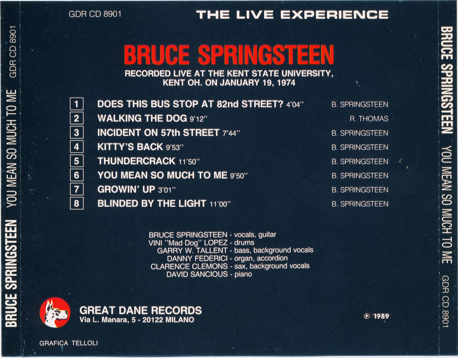ONE show, double bill, with Springsteen opening for headlining Texas blues guitar legend FREDDIE KING (and his band). King was booked for a 6-night residency, however Springsteen was a special guest only for the first two nights. Bruce played before King both nights but was allowed to give a headliner-length performance. The above-mentioned 10-song setlist represents Bruce’s complete performance and is from an excellent quality soundboard that is most commonly found on the widely circulating CD “YOU MEAN SO MUCH TO ME” (Great Dane). Unfortunately the folks at Great Dane incorrectly attributed this audio to a 19/01/74 show at Kent State University – and this erroneous information has widely propagated ever since. Please refer to the 19/01/74 Kent State listing for specific details about that show, which took place in a much larger venue before a substantially larger crowd.