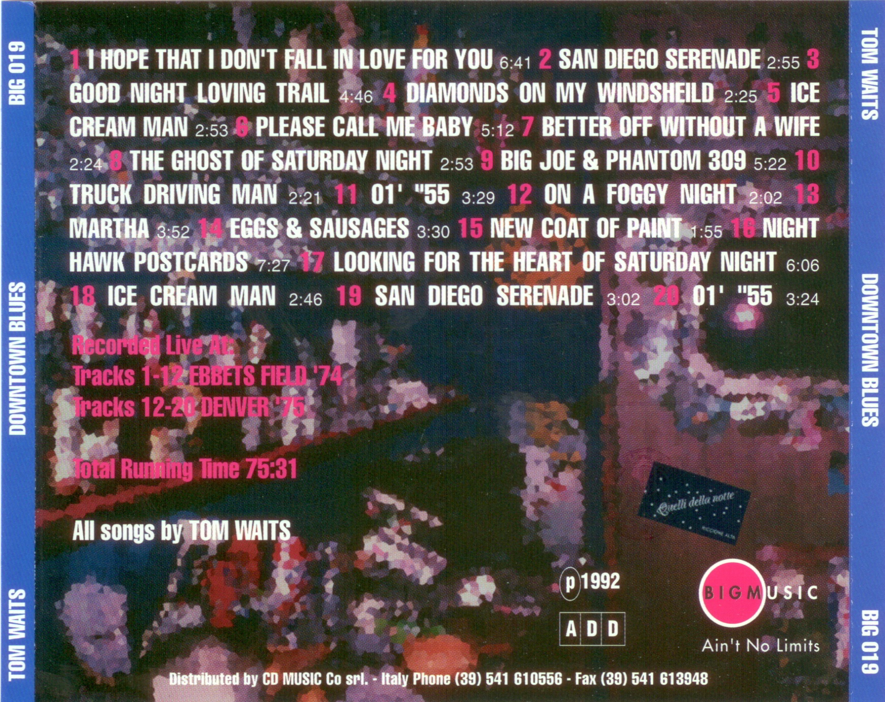 Tom Waits Ebbet’s Field 1974 / Denver 1975 “Downtown Blues”