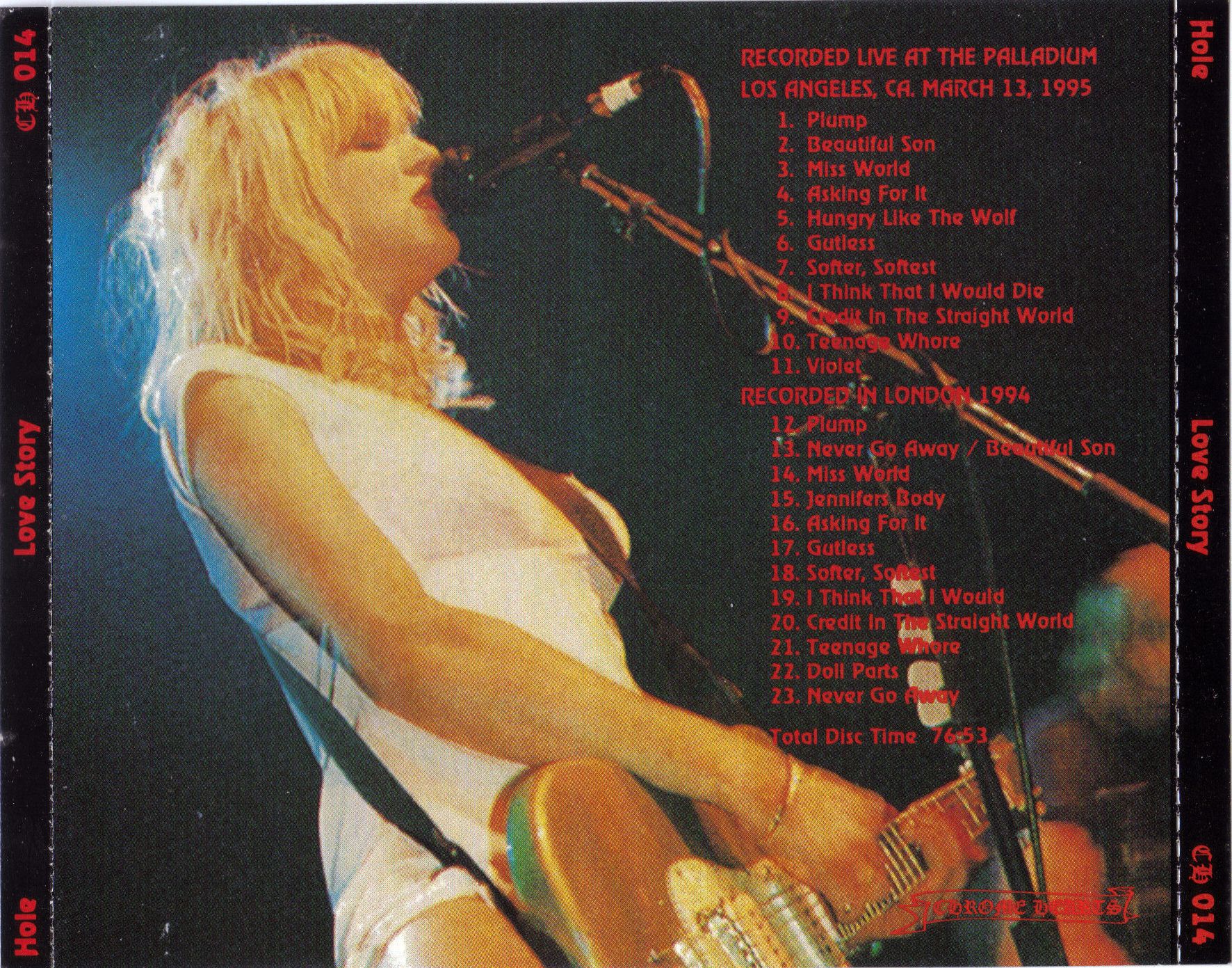 1970s counterparts, which is why there are so many Hole bootlegs with decent or excellent sound. One of the Hole bootlegs that sounds great is Love Story; recorded live in London in 1994 and at the