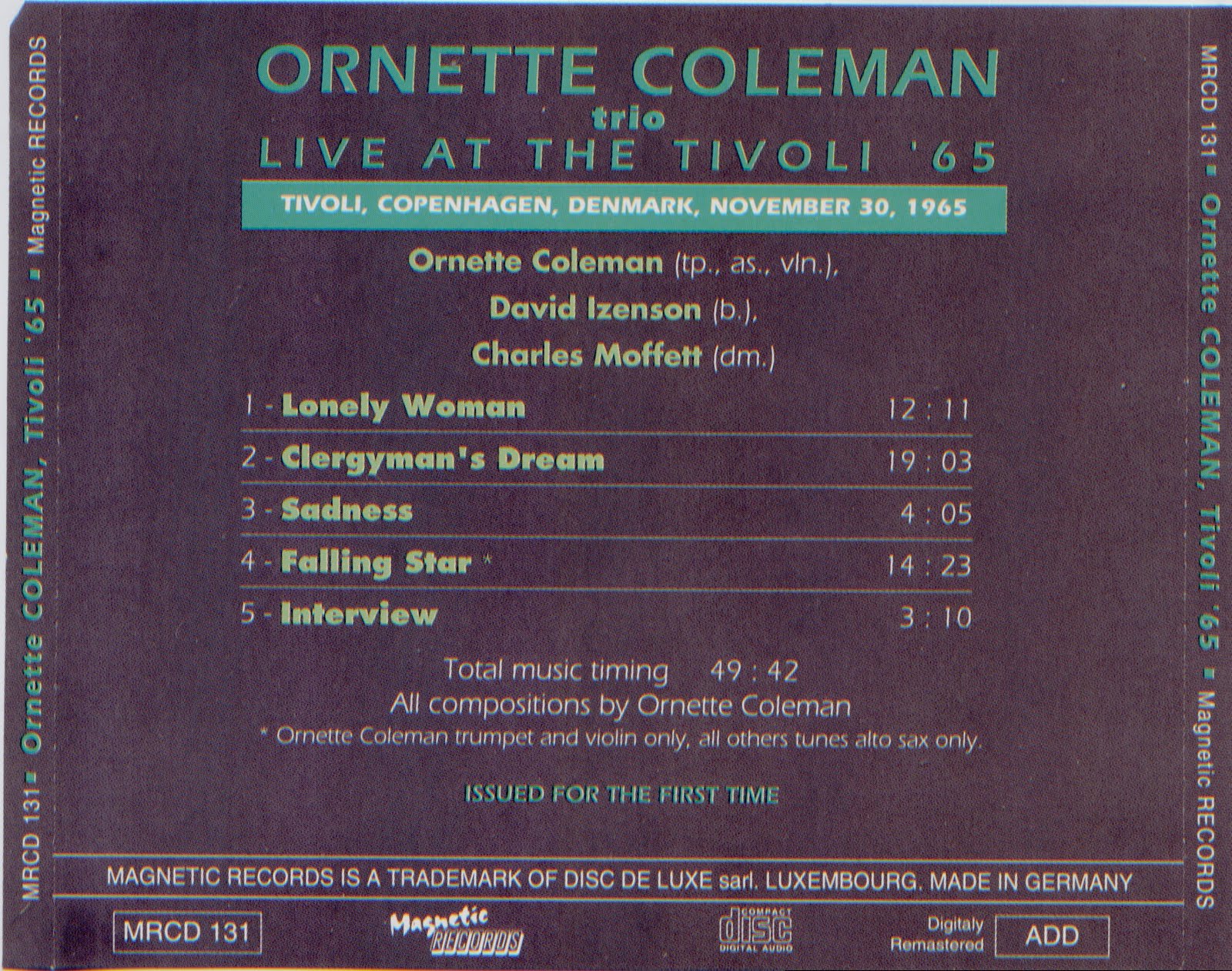 Ornette Coleman: alto sax, trumpet, violin