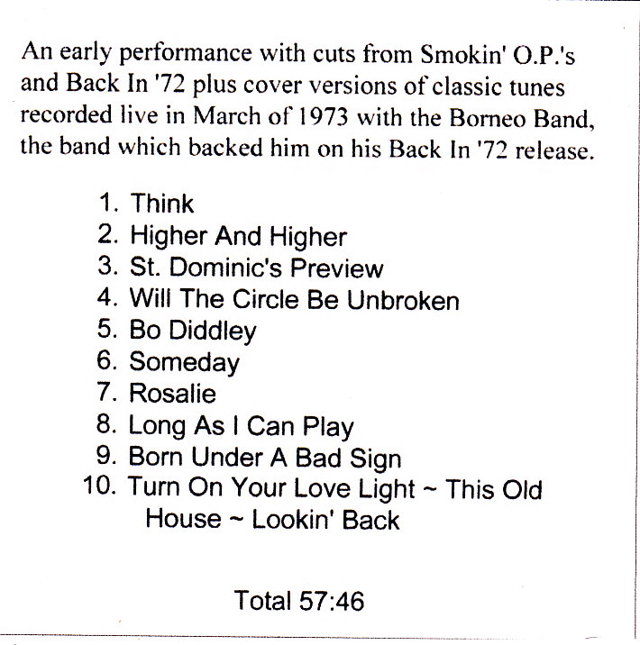 Lineup: Bob Seger, Borneo Band members unknown