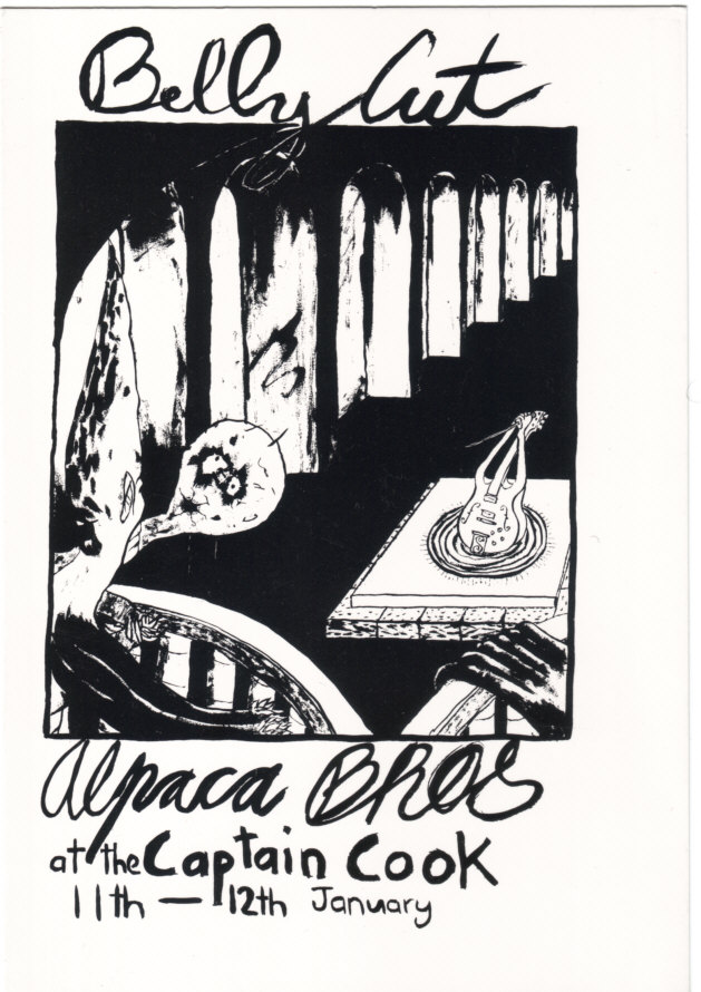 “The “Legless” EP by the Alpaca Brothers is notable not only for a great bass sound (lots of strings slapping against the fretboard in a distinctly non-thumb-popping kind of way) but also a strum-velocity that reminds me of the Feelies, and great quirky songs. The Alpacas included Steve Courname, who would later drum for the Verlaines, and featured guest musicians Peter Gutteridge (Snapper, The Clean) and Norma O’Malley (Look Blue Go Purple). Another of FN’s releases funded by the QEII Arts Council, wherin the New Zealand Government gave grants to make punk records (usually 12″ EPs, which is why Flying Nun seemed to like the format so much).” -little hits