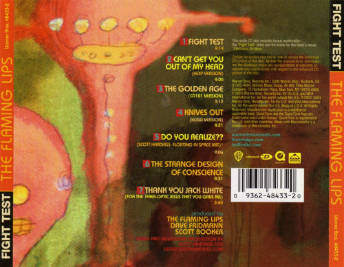 7. Thank You Jack White (For The Fiber Optic Jesus That You Gave Me)The track list on the latest EP from the Flaming Lips consists of their current single ‘Fight Test’, a cover of Kylie Minogue’s ‘Can’t Get You Out Of My Head’, a cover of Beck’s ‘The Golden Age’, a cover of Radiohead’s ‘Knives Out’, a dance remix of Do You Realize??, and two original unreleased songs. When I first saw this track list, I was anxious to see what the EP was going to be like. Although I had already heard all three covers, the quality of the recordings I had heard was poor.