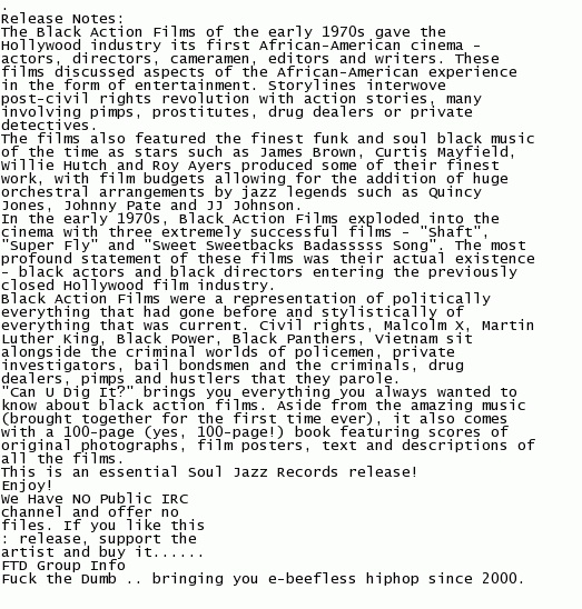 Soul Jazz is always worth keeping an eye on for some interesting tunes, but movie fans are getting in on the act with Can You Dig It? Black Action Films 1969-1975, which is out today.