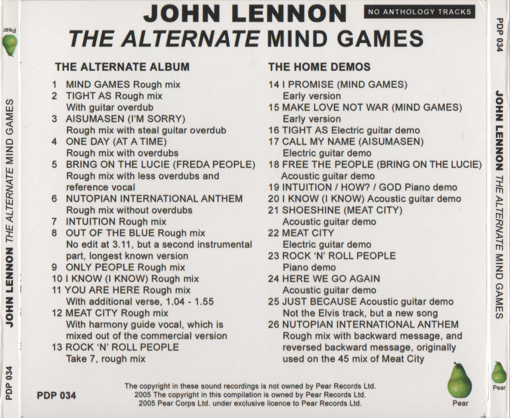 John Lennon – The Alternate Mind Games (Pear PDP 034)