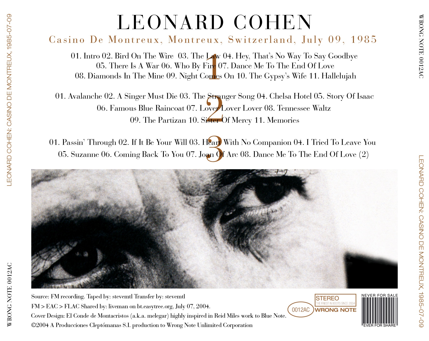 lineage: reel master > dat(1?) > cdr(2?) > eac > .wav > .flac [ > .wav (d1t01, d2t01 & d3t01 only) > Adobe Audition 1.5 / shntool > Flac Frontend (-8, v) ]