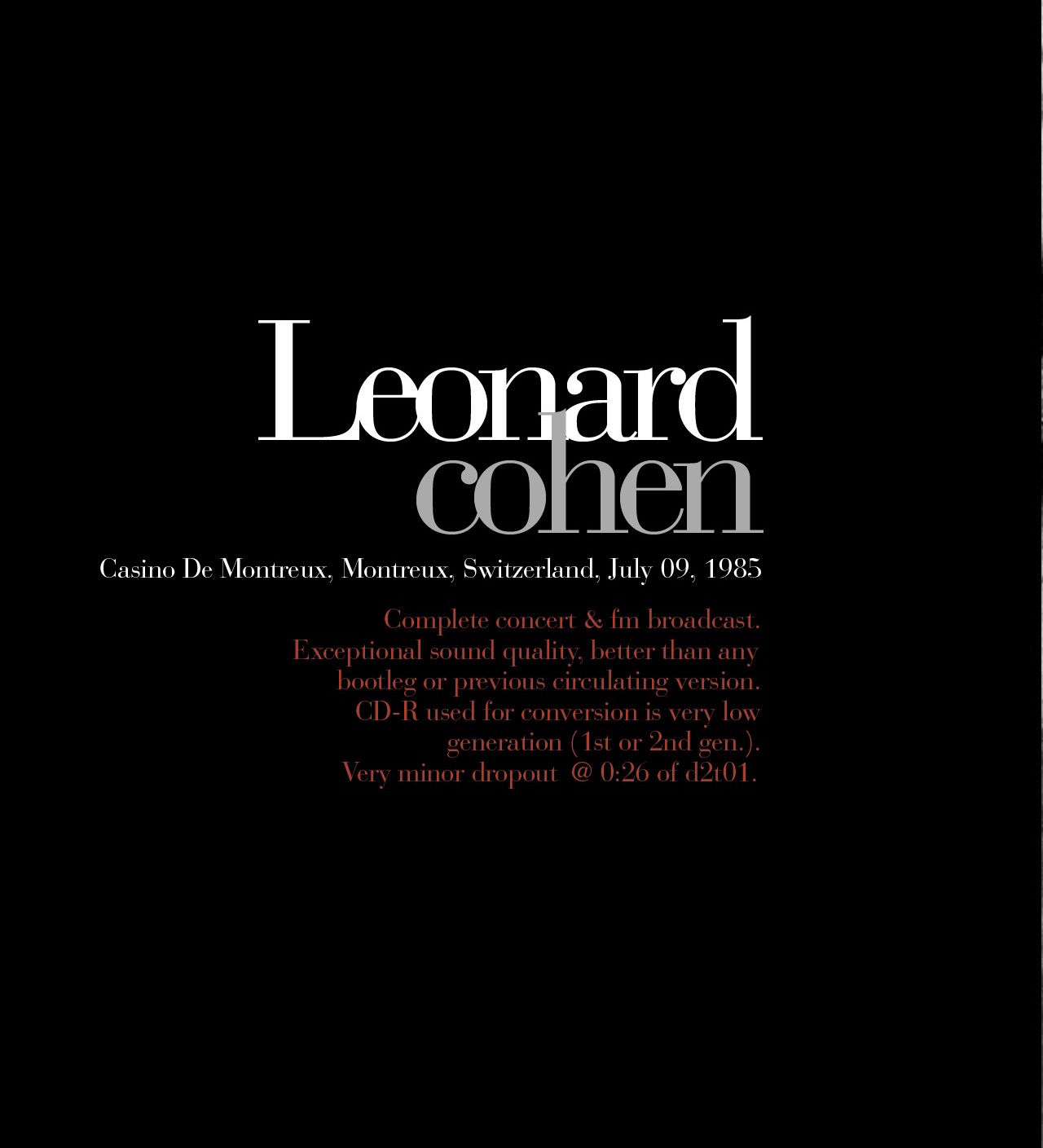 – exceptional sound quality, better than any bootleg or previous circulating version.