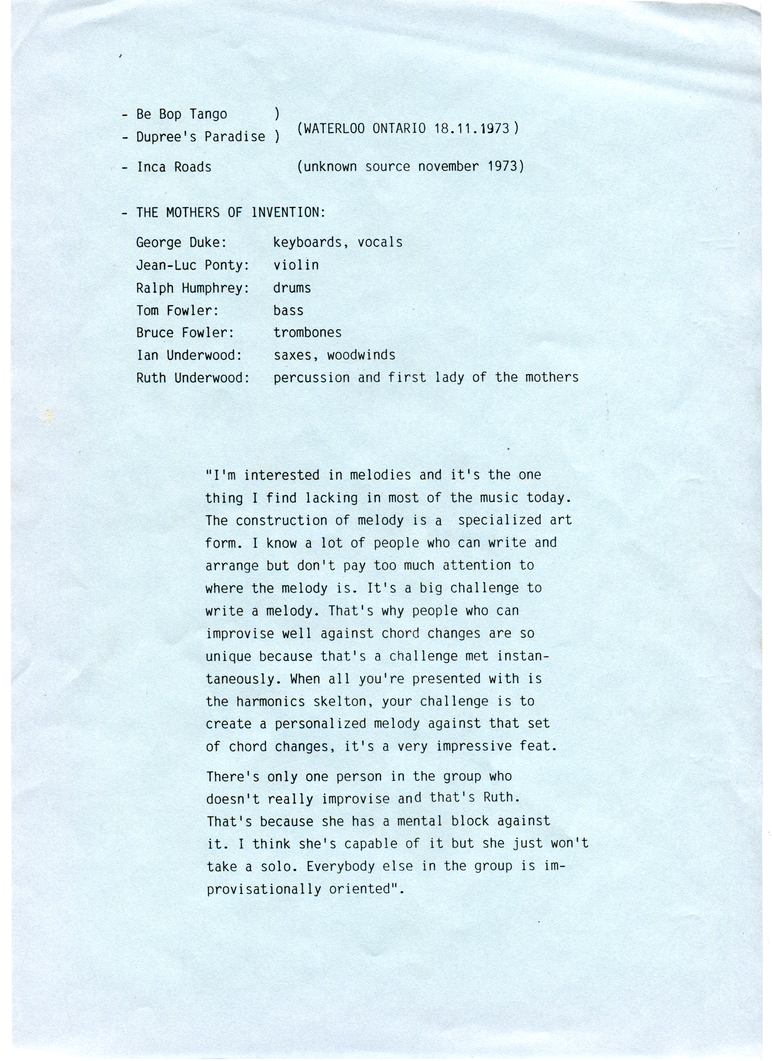 Track 1 live in Waterloo, Canada, 18-Nov-1973 (see Around the World)