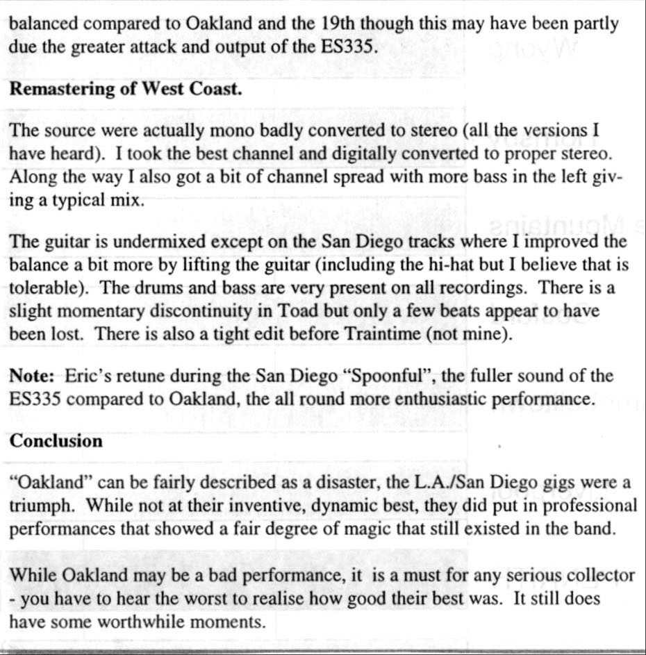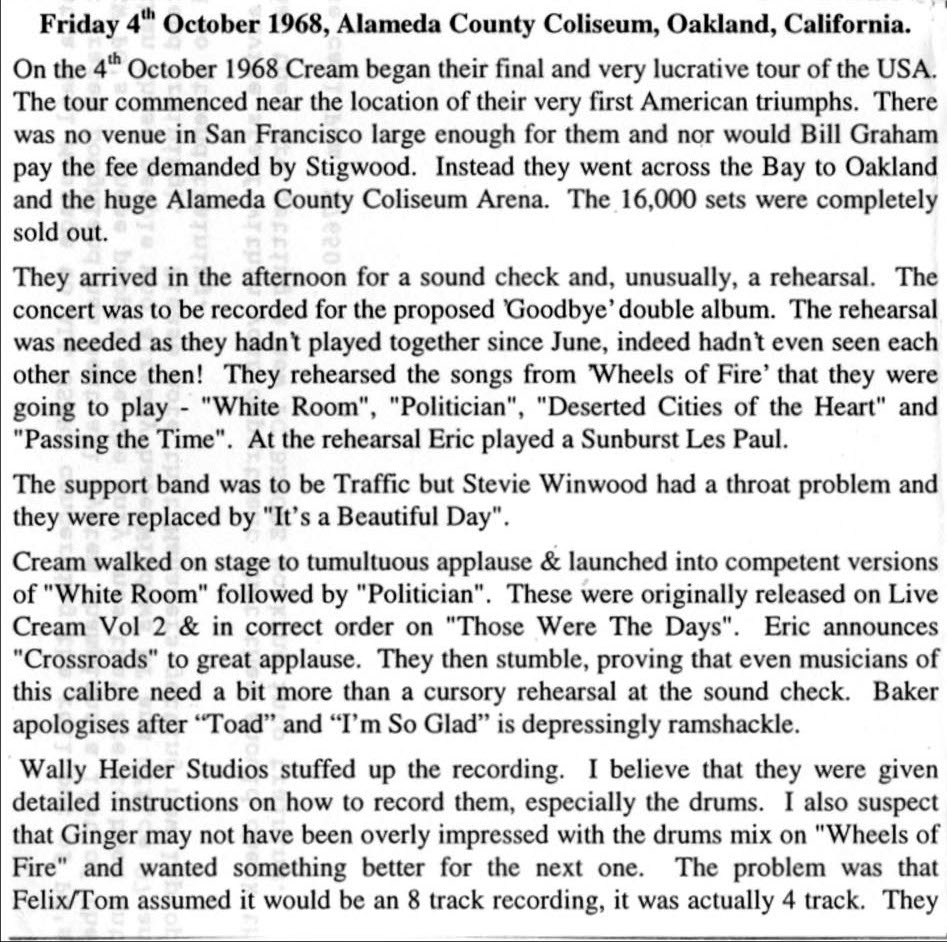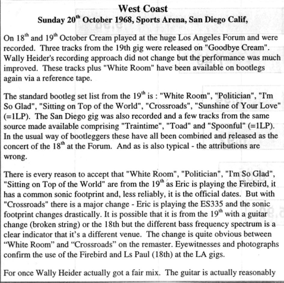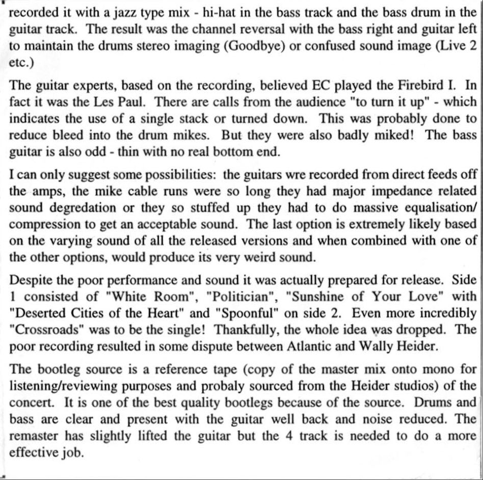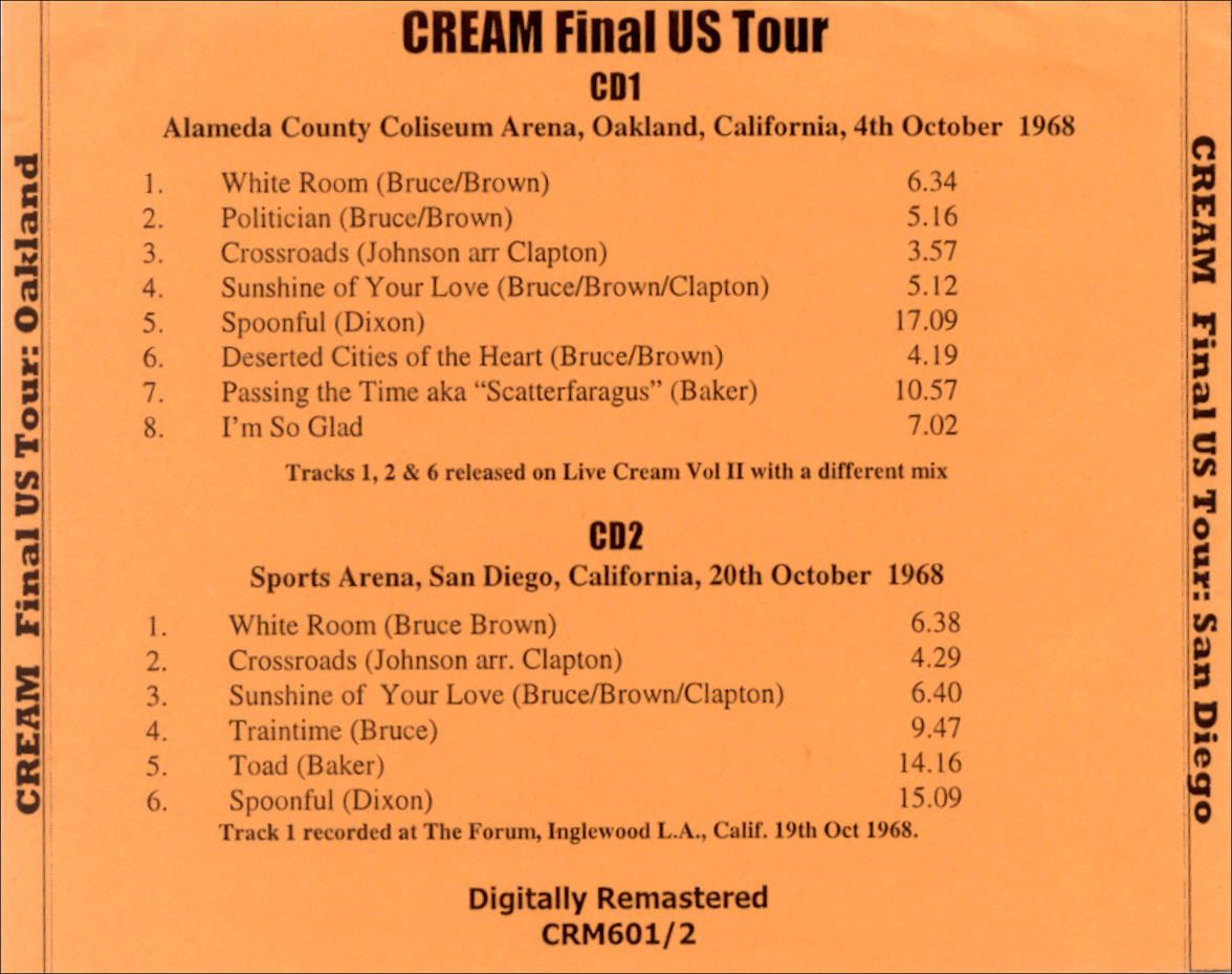 Tracks 1, 2 & 6 released on Live Cream Vol II with a different mix