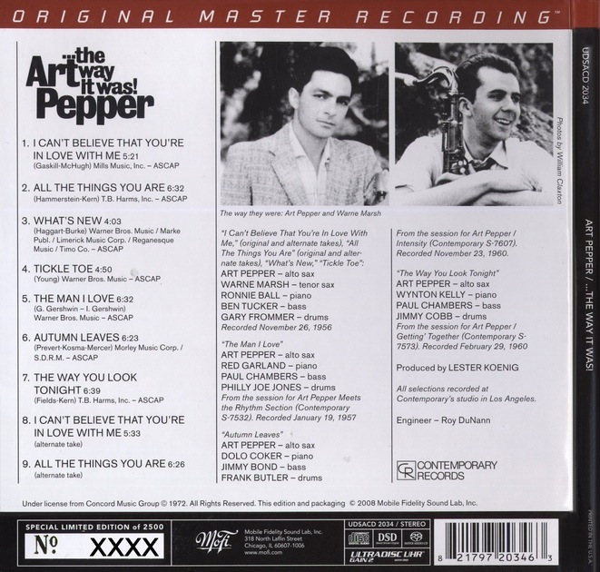 Art Pepper – The Way It Was (MFSL UDSACD 2034)