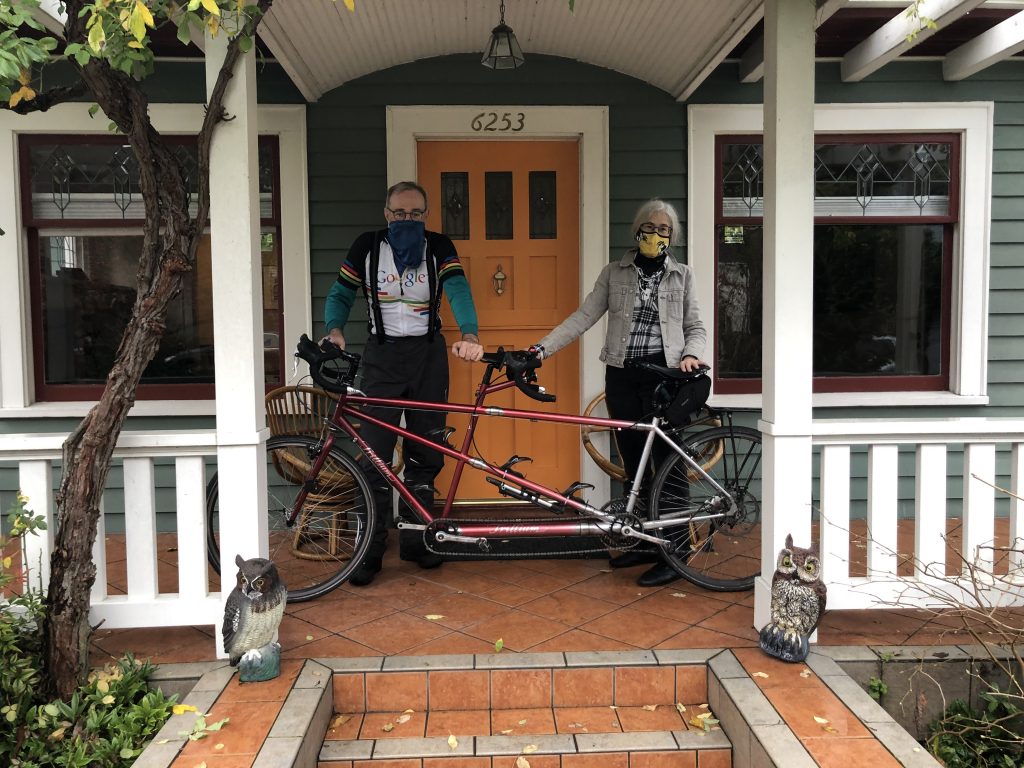 (I’d like to use the garage as a background, but it needs to have us and the tandem in the image which makes a selfie dificult)