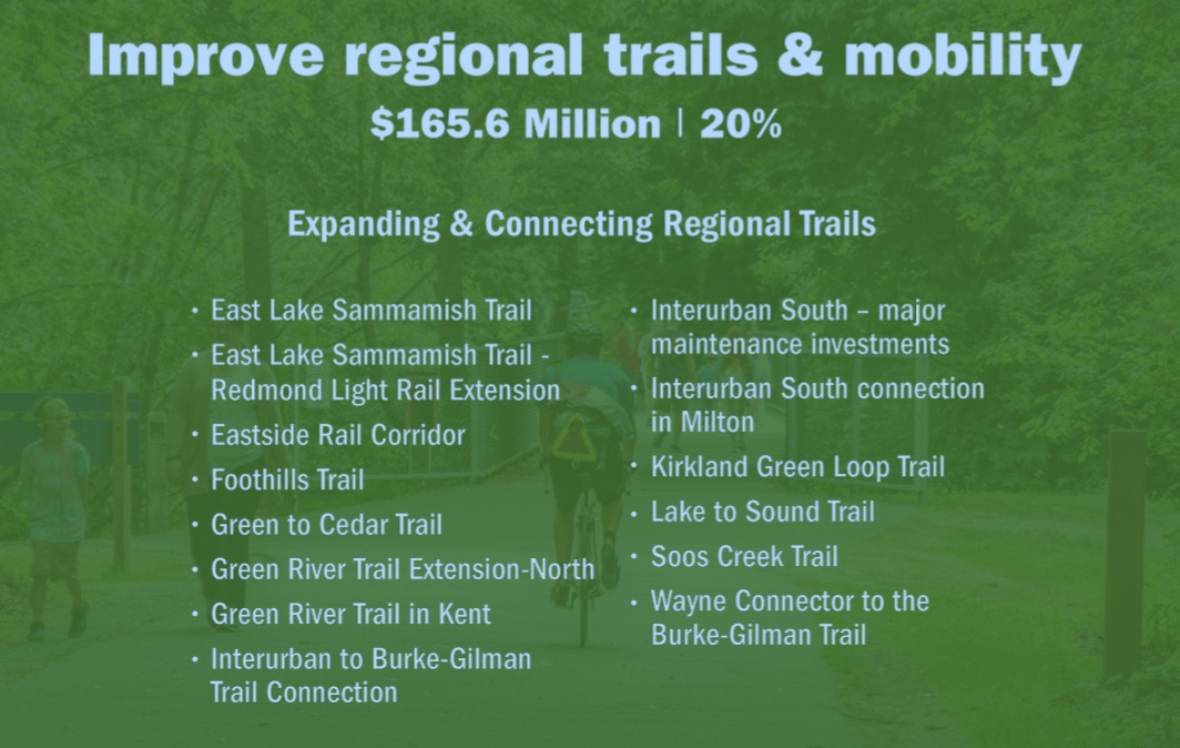 That last post about levy-supported trail projects got me thinking – here are some things I would do with $165 million for King County trail projects (in no particular order):