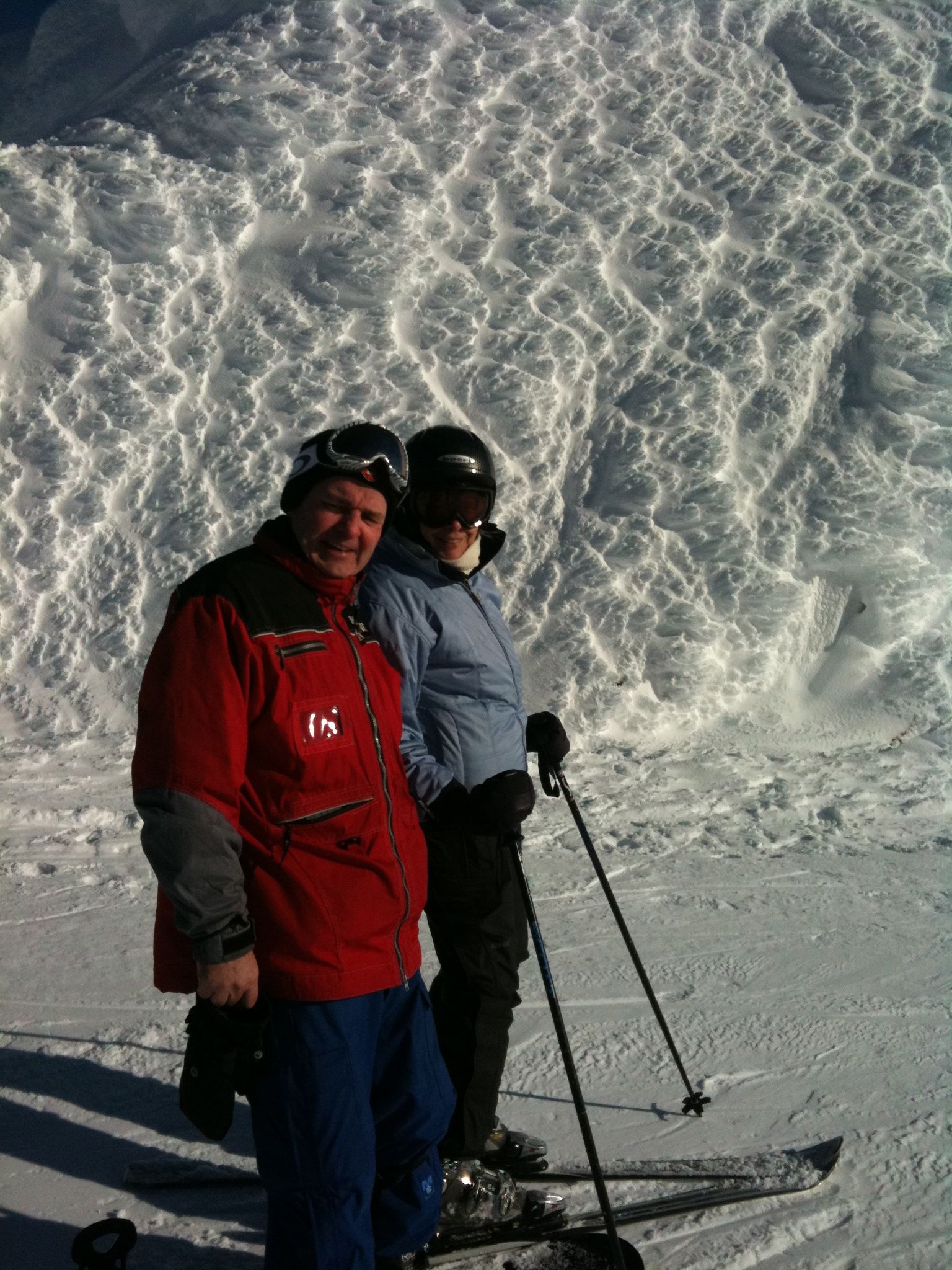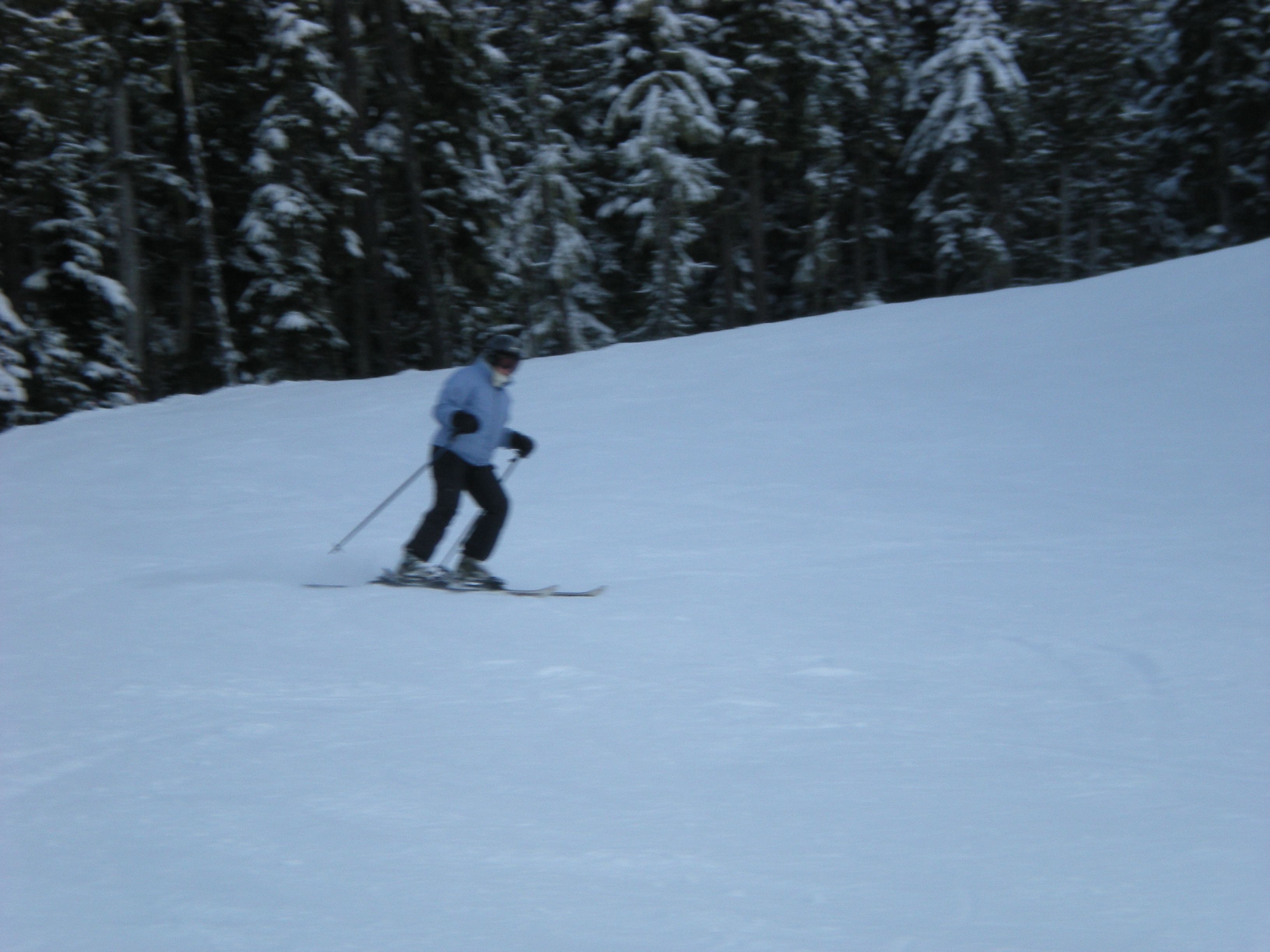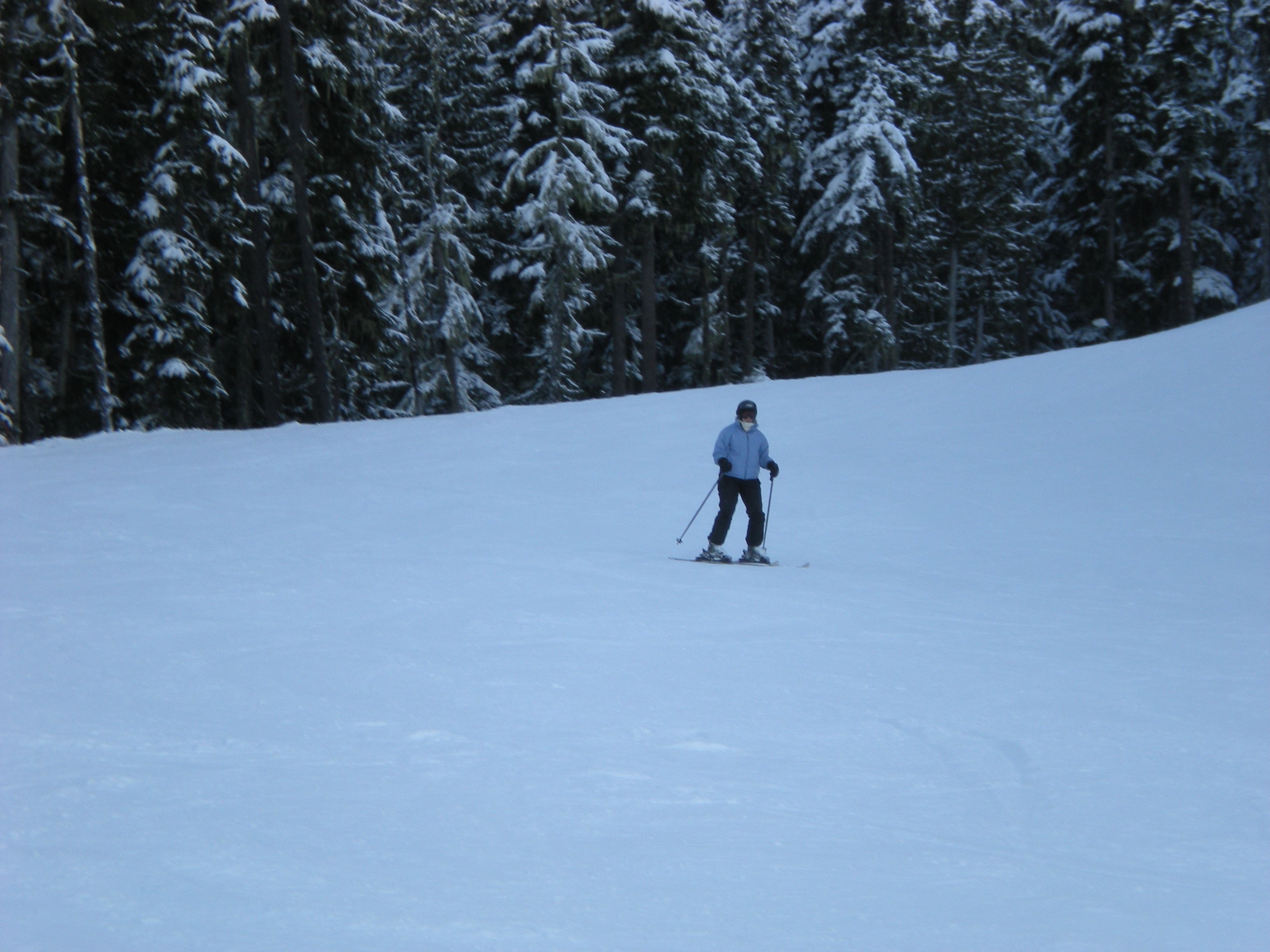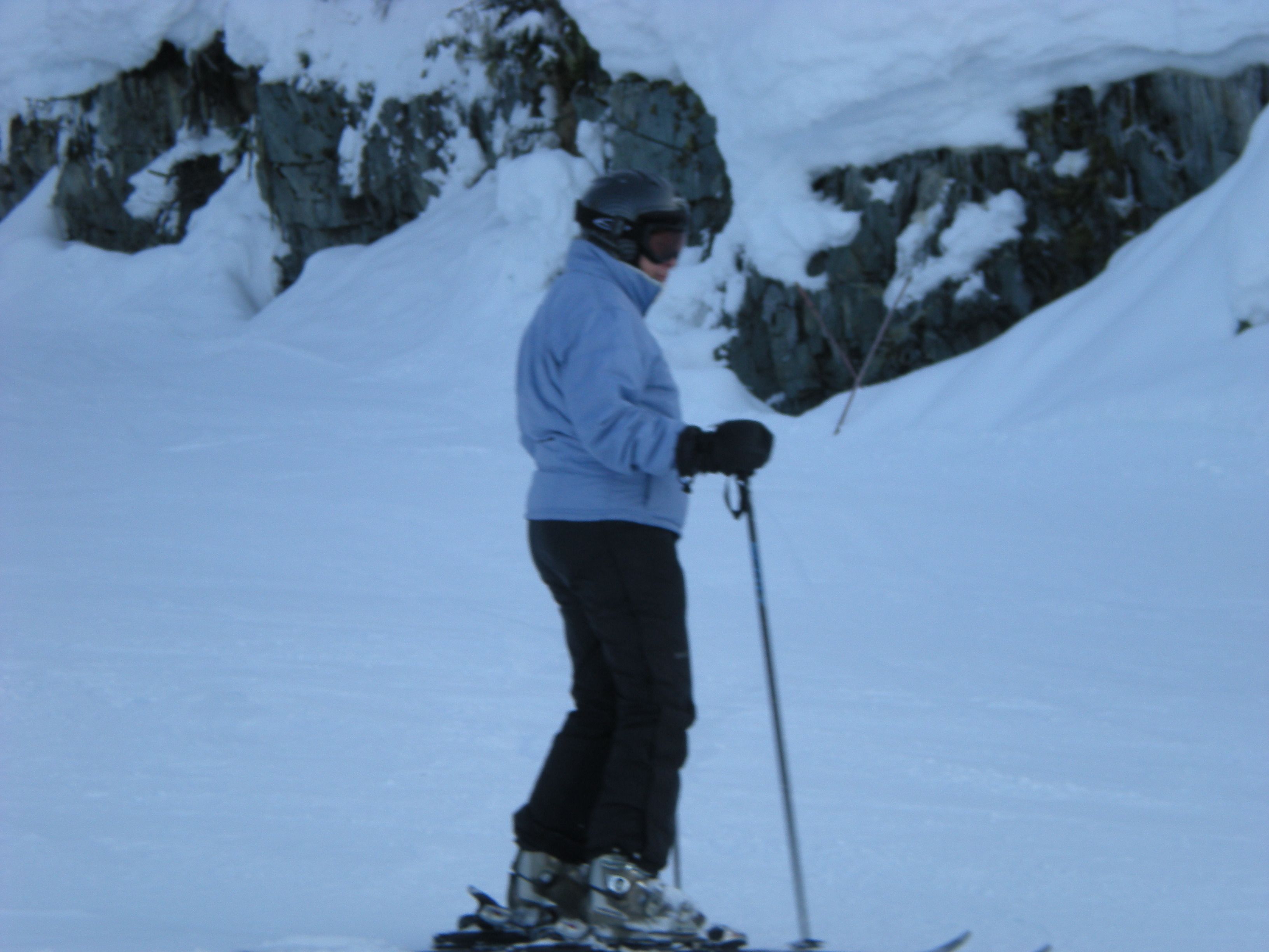 The plan was to drive directly from ski school at Snoqualmie Pass to Whistler on January 15 and to return on January 22. Will planned to bring a friend. The week before the trip Jerry was badly over-extended at work, including three very late nights with union negotiations. Will’s friend cancelled. It rained hard up to 8,000 feet so ski school cancelled. We drove down Saturday morning and had lunch in Vancouver. We bought some stuff at MEC and were embarassed by our visa card (even though Odette had called in advance to alert them to Canadian charges.) We stayed in Deer lodge again. Because it had rained to the top of the mountains at Whistler, too, we didn’t ski on Sunday. Monday on Whistler was okay once you got up to the Peak chair – except for the fact that you couldn’t see anything. Tuesday on Blackomb was frozen and scraped up. Wednesday on Whistler was even more so. We blew off Thursday because it was raining again and Odette and I went to the first nations cultural center where the carvers gave me a bad time about my patagucci wool top. Friday was sunny with 8 inches of new snow and Will and I skied Whistler while Odette lounged about. It was a really good skiing day. Saturday at Blackomb was also good, although everything had already been skied.