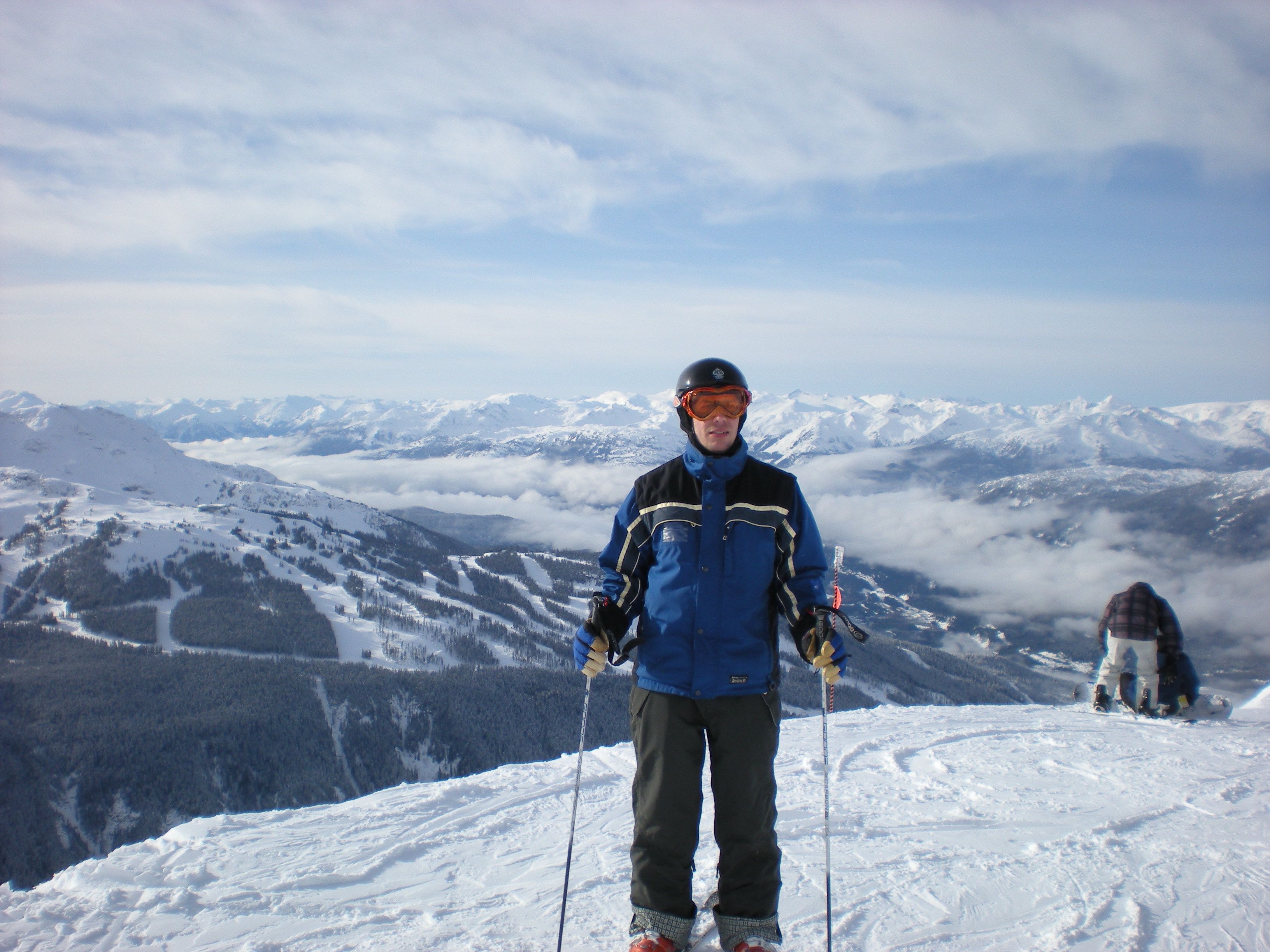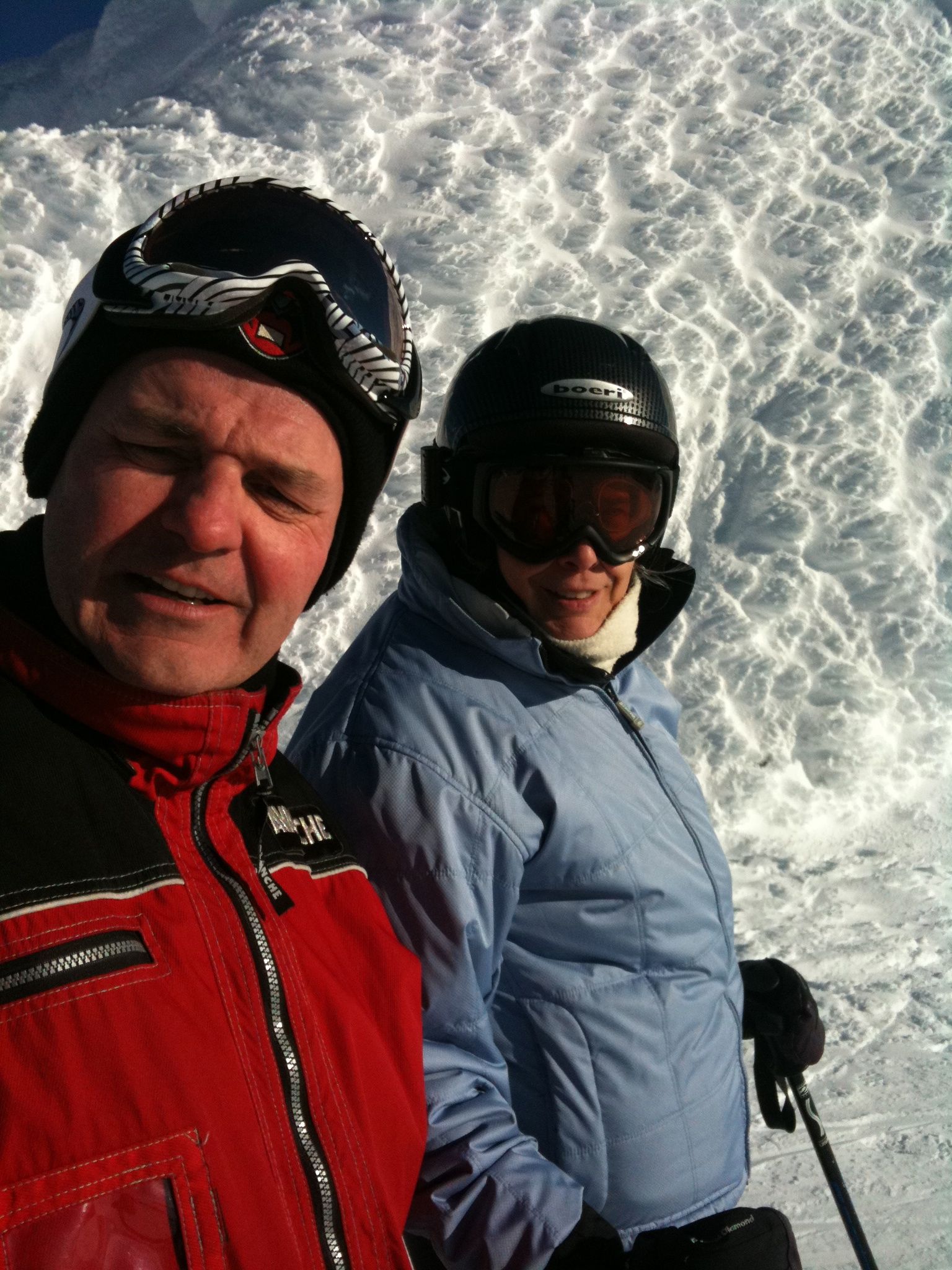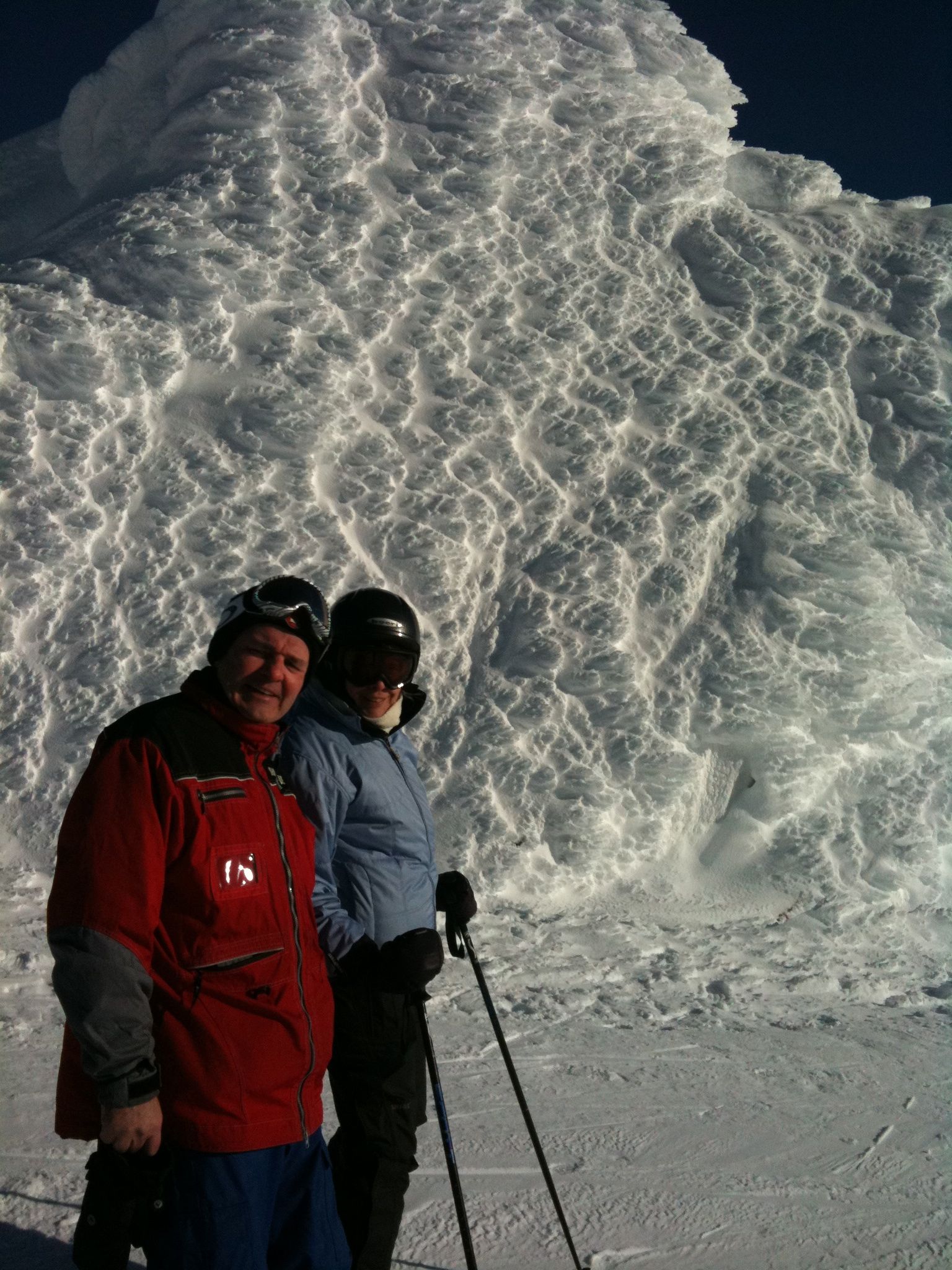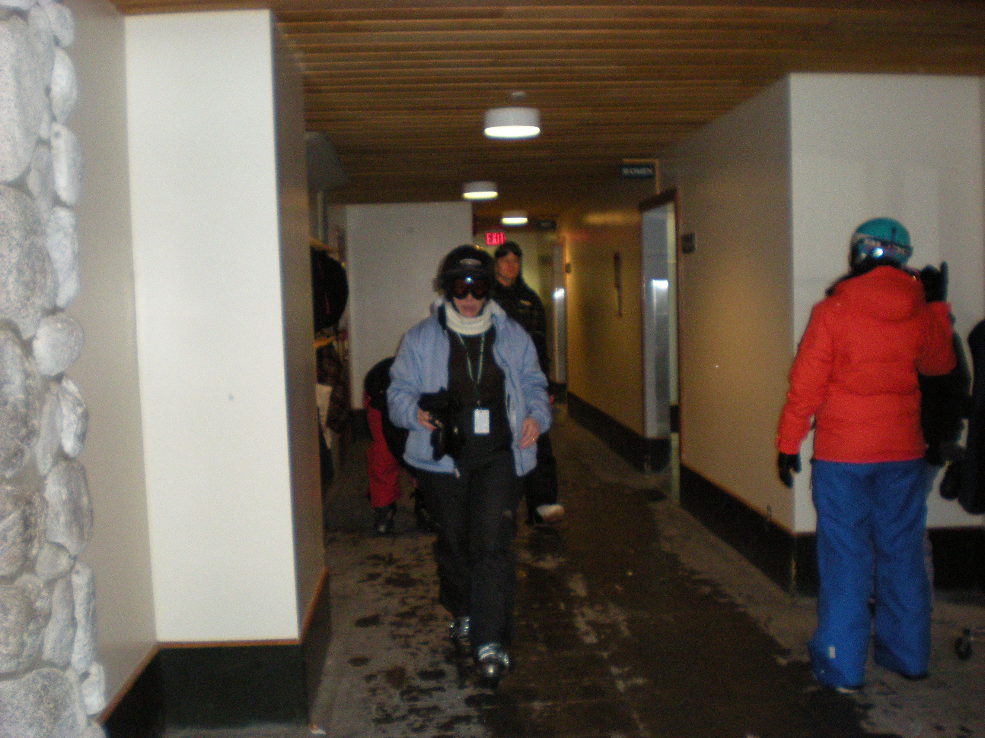 The plan was to drive directly from ski school at Snoqualmie Pass to Whistler on January 15 and to return on January 22. Will planned to bring a friend. The week before the trip Jerry was badly over-extended at work, including three very late nights with union negotiations. Will’s friend cancelled. It rained hard up to 8,000 feet so ski school cancelled. We drove down Saturday morning and had lunch in Vancouver. We bought some stuff at MEC and were embarassed by our visa card (even though Odette had called in advance to alert them to Canadian charges.) We stayed in Deer lodge again. Because it had rained to the top of the mountains at Whistler, too, we didn’t ski on Sunday. Monday on Whistler was okay once you got up to the Peak chair – except for the fact that you couldn’t see anything. Tuesday on Blackomb was frozen and scraped up. Wednesday on Whistler was even more so. We blew off Thursday because it was raining again and Odette and I went to the first nations cultural center where the carvers gave me a bad time about my patagucci wool top. Friday was sunny with 8 inches of new snow and Will and I skied Whistler while Odette lounged about. It was a really good skiing day. Saturday at Blackomb was also good, although everything had already been skied.