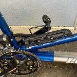 Here’s what it looks like after mounting the bottle cage and the mini pump bracket on the same riv nuts as the battery: