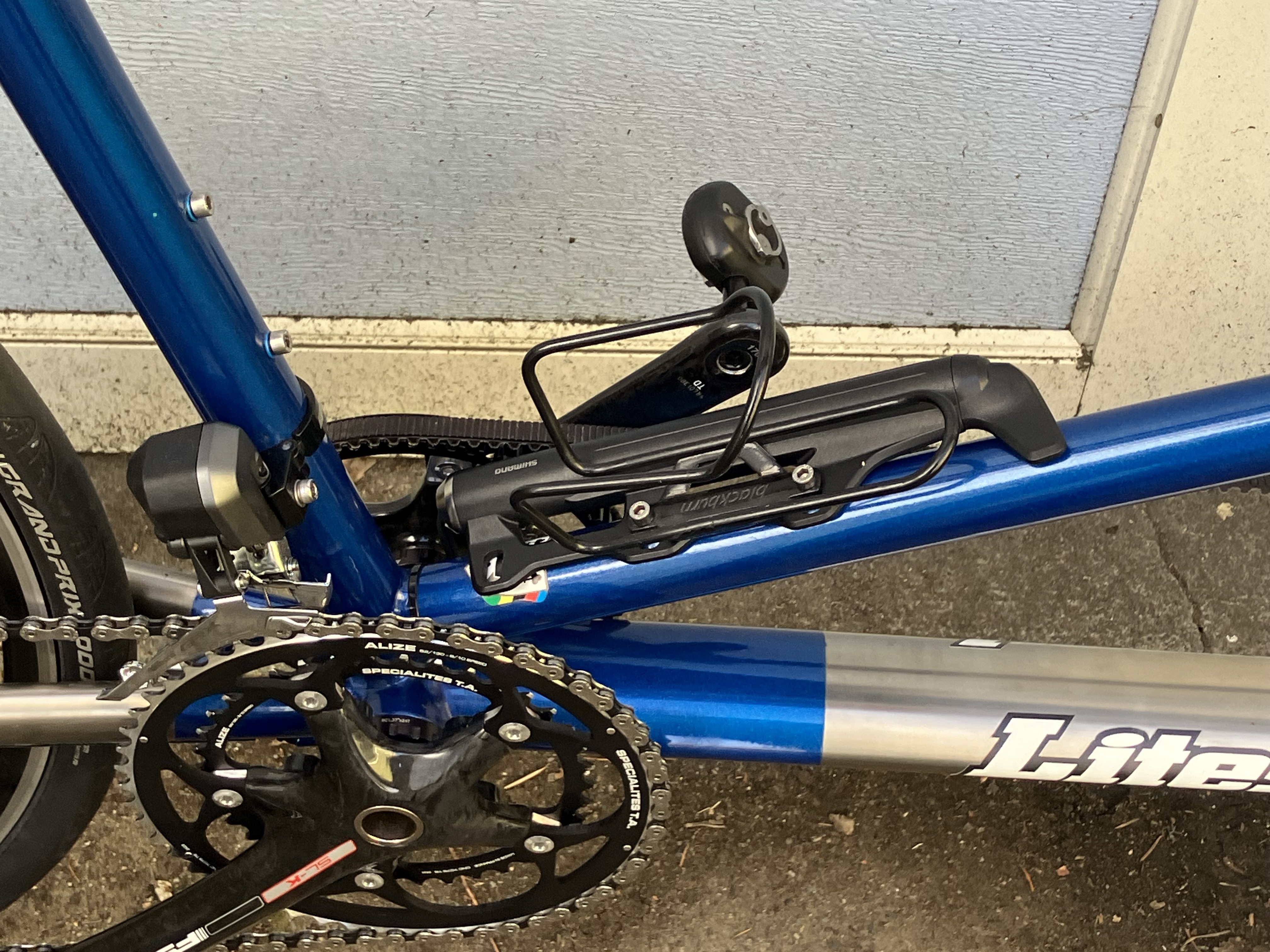 - Eventually I will want to replace the blackburn bottle cages with something sexier. I know that there are bottle cage mounts for mini-pumps that might make the battery look more symmetrical.