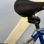 - They installed a body float which I wasn’t expecting. The thud buster on the red tandem was always set in the lowest position and it looks like the body float on this bike will similarly be as far down as it can go. (If it doesn’t work I’ll put it on another bike and we’ll start the process of getting a version of the Brooks saddle that she likes.)