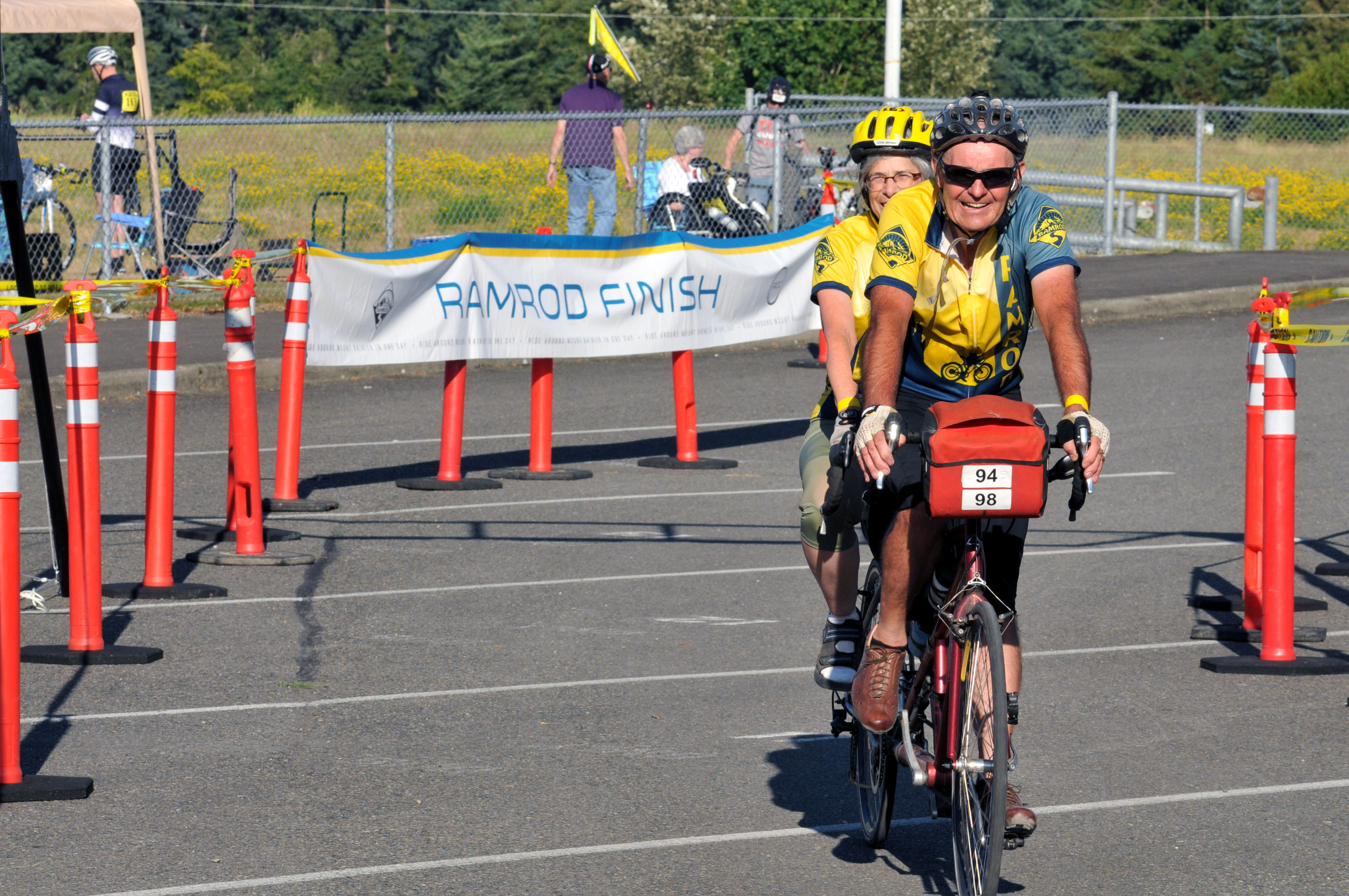 After returning from France (and after recovering the half of the tandem that got lost by Iceland Air) we had trouble with the way the tandem shifted. I blamed it on the broken rear shifter cable I’d replaced in Besancon, but no matter how much I fiddled with it I couldn’t get it to quit skipping when we loaded it. I finally took it in to R+E and they lubed the cable and twisted the barrel adjuster and it seemed to solve the problem. On the Sunday before the event we rode out to Redmond and picked up our packets.
