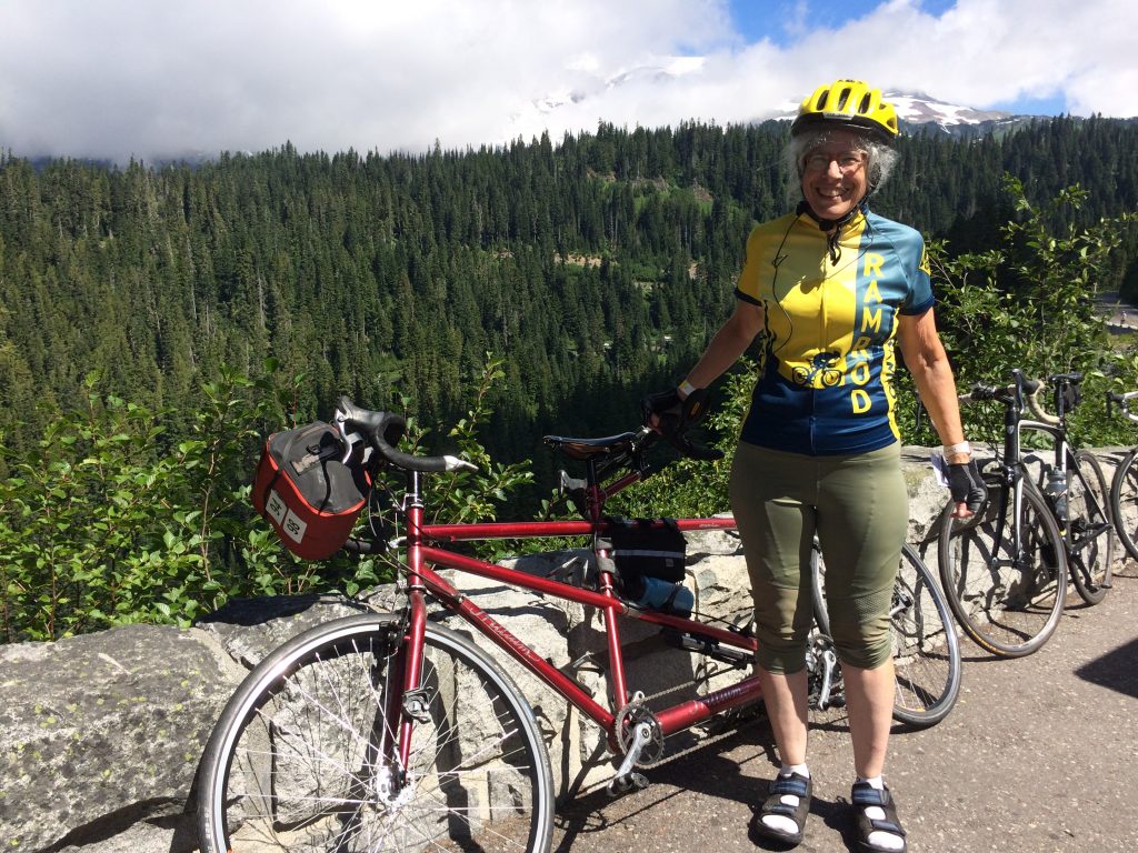 On July 27, 2017, Odette and Jerry rode around Mt. Rainier in one day.