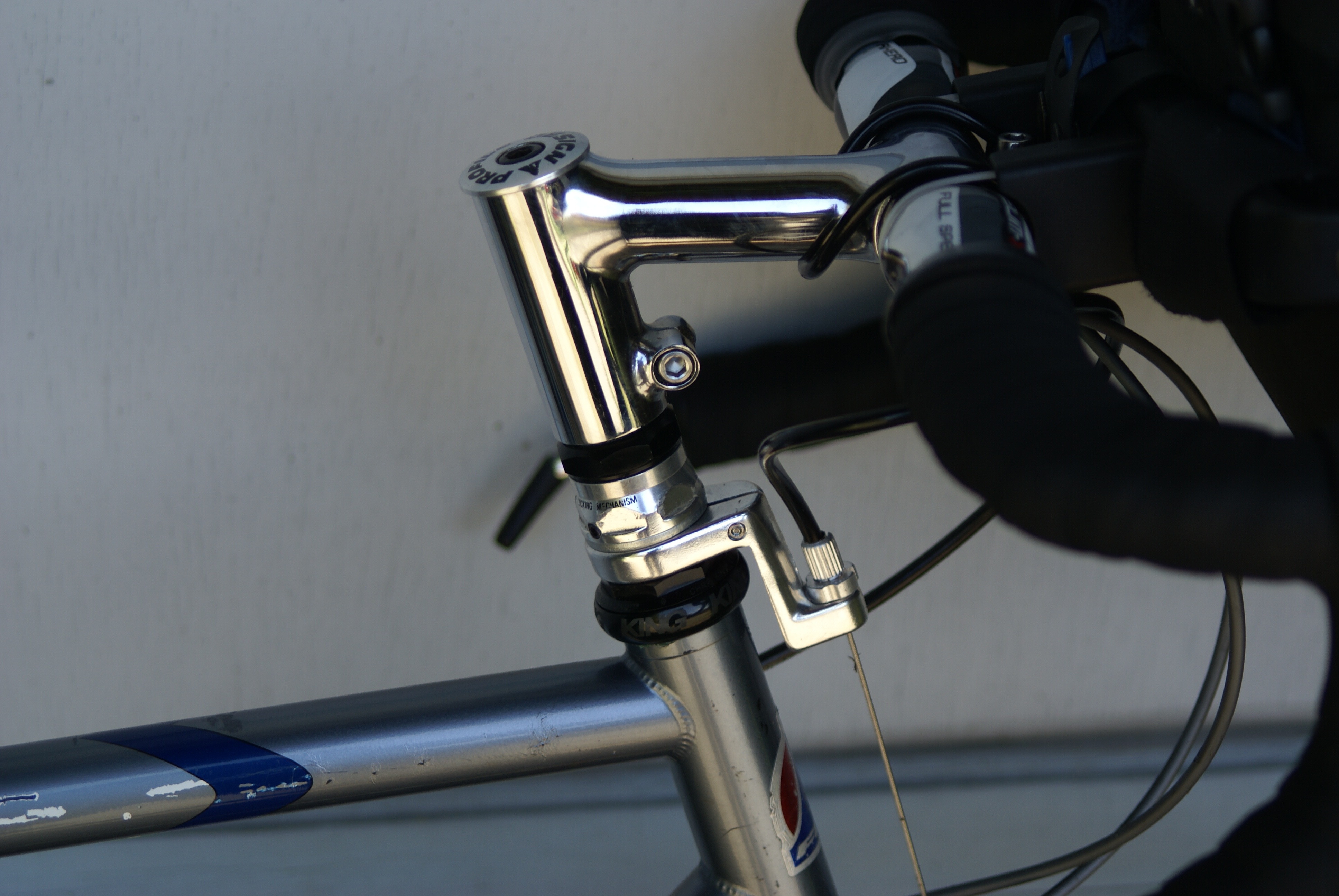 When the Compass shipment came I found that they’d shipped me a 100mm Nitto quill stem instead of the Compass threadless one I’d ordered. I notified them of the error, not mentioning that I’d put a slight rip in the Nitto box, and they agreed to send me the right one and cover the postage for the return. I volunteered that I’d save them the postage by dropping the Nitto stem off at their mailing house since it was only a couple miles away. (I did a loop around West Seattle one morning and came back over the locks and dropped the package off. I confused the mailbox guy, but evidently it got to where it was supposed to.)