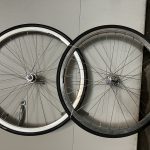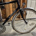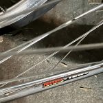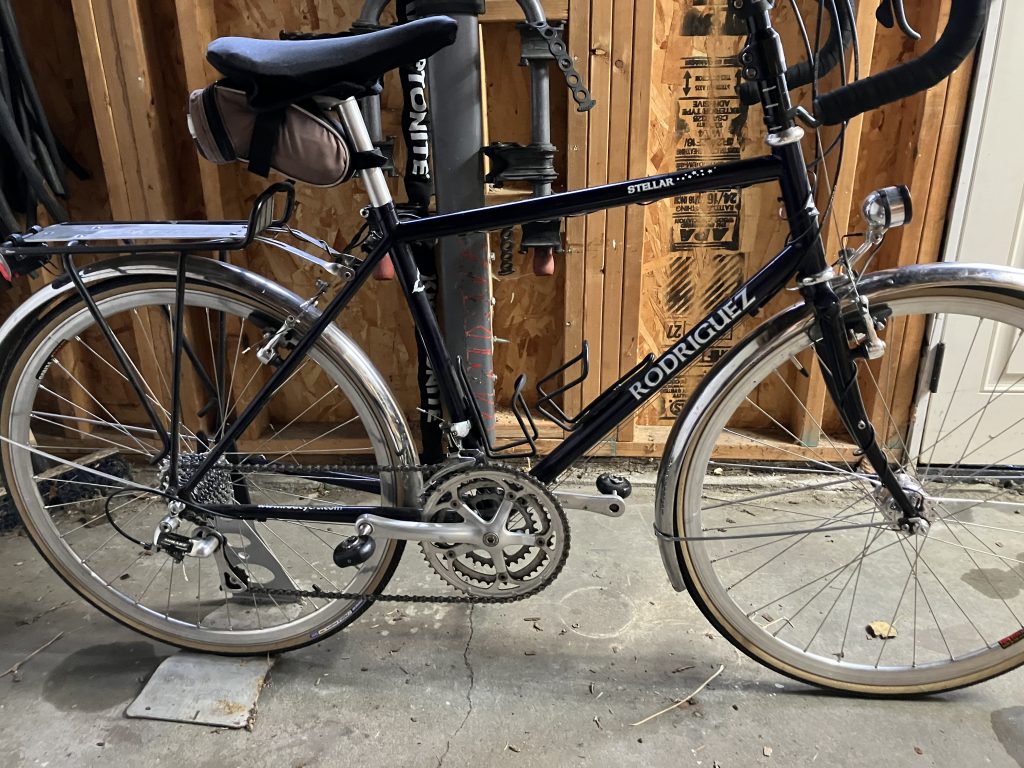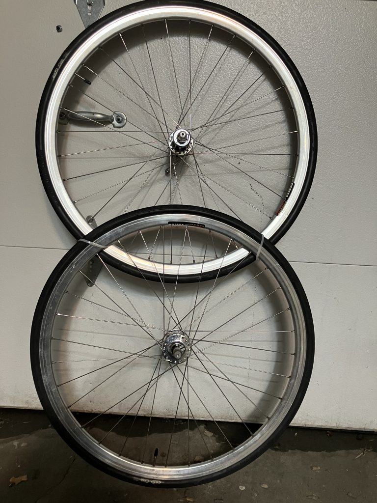 Here’s how the bike looks with 23s. I still think that the 28s will fit (Google says 28mm is 1.102 inches…) The Venus rims are evidently narrower than the old ones (at least on the exterior) because I had to adjust the brakes to eliminate a couple mm of travel on each side. At the end of the day, the new lights & wheels cost less than than the original bike.