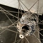 After toying with the idea for a while I decided to get dynamo-powered lights for her Rodriguez which would also mean getting a new front wheel. As I was thinking that through I realized that I still had the rims I’d taken off the Tuscany. Those rims were silver Sunrim Venus 650C. They were pretty chunky and I was happy to replace them on the Litespeed, but they would look pretty good (and be period appropriate) on her Rodriguez. That would also mean building two wheels instead of one, and to keep the existing wheelset intact I’d need to get a Campy rear hub.