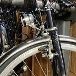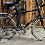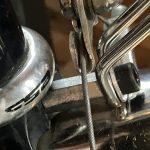Twenty years later I had not messed much with her bike. It had Dia Comp cantilever brakes that she complained didn’t stop it very well so I inserted some Paul’s cross levers that were a little easier for her to grab. It had a steel frame and tires that I understood to be 26″ – 26 X 1 or 26 X 1-1/4 tires fit okay and rode just fine. The real magic was that they did a good fitting and set it up with a stem extender that gave her a really upright position. The bike didn’t get a lot of use, but it worked well for her and was her benchmark when riding other things. (In 2016 I again felt sorry for her having a heavy bike and built her a Litespeed Tuscany that was intended to mimic the dimensions and gearing of her Rodriguez. It got even less use.)