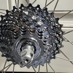 That evening the NOS cassette arrived. Odette noticed the package but didn’t ask any questions. I mounted the cassette on the hub without any issues. I mounted the new wheel on the bike without any issues. I always worry about an old chain on a new cassette, but it seemed to shift okay – at least I could run it through the full range and it didn’t skip or clatter. We’ll see if that’s just on the stand or if it also works on the road.