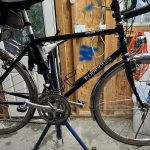 In 2003 I bought Odette a Rodriguez Stellar. She had been riding a very heavy Hardrock and didn’t like going out with Will and me because she couldn’t keep up. It was the first expensive bike we owned – costing maybe $2,000 – and it made a real difference in her speed. While it was billed as “semi-custom” there were only about half-a-dozen frame sizes to choose among and I don’t remember having any options with regards to components. (It came with a Campagnolo Mirage drive train and neither Odette nor I had any idea that it was anything special.)