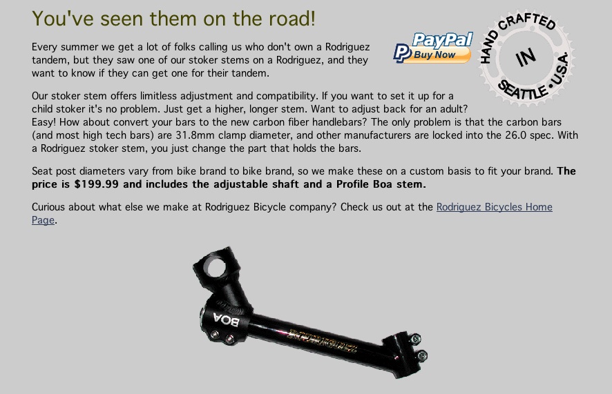 - headset & handlebars – is there any argument for the carbon bars that I have on the other bikes? can I get the fit I want with a threadless adapter and an extender? is a steerer extension safe if they put the joint in the middle of the head tube and reinforced it with an interior support? could I use a Rodriguez stoker stem? what do they recommend for brake levers?