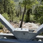 I loaded the tandem on the roof of the car and we (or rather Odette) drove to Marblemount with no complications other than seeing a bear just before Rockport. The lack of complications was not guaranteed since it was the first time using a rebuilt tandem carrier. After Odette ran into low overhead pipes, I took off the Yakima bars and attached the carrier directly to the factory rack. I removed it in February to mount a ski case and when I put it back together, instead of a longitudinal bar to clip the strut to, I mounted a regular bike carrier with a U-bolt through it about midway. I also drilled a couple of holes in the tandem pivot plate so that I could put bolts through and entirely lock it out. I was scared the wing nuts I used on the bolts would loosen up and I was scared that the holes I drilled in the channel for the U-bolt would wallow out. It actually tightened down very nicely and 100 miles later the wing nuts were loose but not in any danger of coming off and the bike was not swaying enough to bother me.