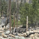 The next day breakfast wasn’t available until 7:30 so after a late start we left the car in town and rode out East Chewuch River Road to the end of the pavement on Forest Service Road 51 and back on West Chewuch River Road. Here’s the map. It was almost 50 miles, but I had mapped a 35 mile route in RWGPS. (I couldn’t find the stream crossing where we’d always turned around and stopped where RWGPS showed an end to the pavement.) It was hot and the last couple of miles on the way out were brutal. The side hill traverse that you do on West Chewuch on the way back wasn’t much better. There was a cable team running wires with flaggers stopping traffic and Odette cried out to them in sobs, pleading for them not to stop us on the grade. We got back to the car at the community barn and collapsed in the shade on the grass. We stopped at the Thriftway and bought grapes and cold juice.