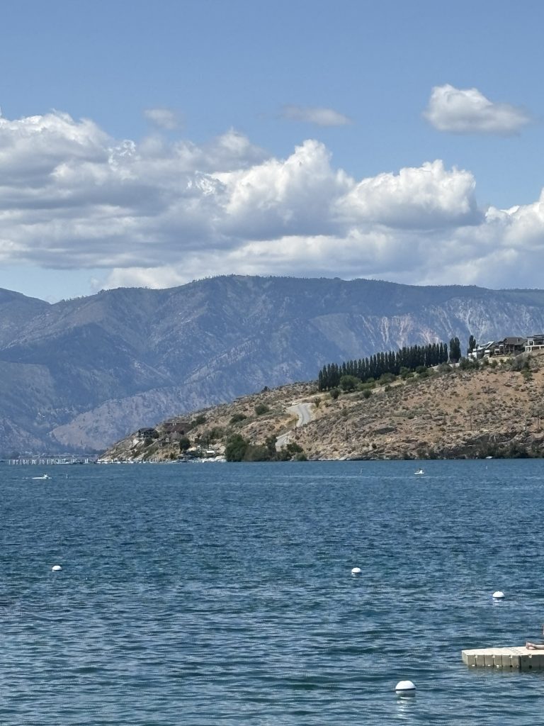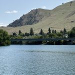 Odette drove about 50 miles to Chelan and we checked into an AirBNB pretty close to the center of town. The room didn’t compare to Sun Mountain but It was just about right for what we were doing. We had dinner at Campbell’s and the NY Strip was frankly much better than anything I’d eaten at Sun Mountain. The next morning we got an early breakfast at the Artisanal Bakery (which we carried back to our AirBNB.) We rode out US 97 A to Navarre Coulee Rd to S. Lakeshore Rd and back on US 97 A again. Here’s the map. It was another 30 mile day but with enough climbing to make it interesting. It started out cool but warmed up as we climbed up the coulee. On the highway descent (after the tunnel) I swerved to miss rocks on the shoulder and got honked at by an SUV. Odette kept looking for the steep part but didn’t seem too disappointed when it never materialized. After our ride we walked around downtown visiting another bookstore and the riverfront park and then had dinner at Campbell’s again. Impressively, the waitress from the previous night recognized us.