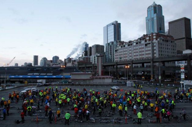 We lucked out on the weather – snow showers were predicted but it ended up dry and in the 30’s. I wore sun glasses for the whole ride. We parked on Alaska Way – north of Pier 70. We took the 7:55 Ferry over and the 11:30 ferry back. A good ride.