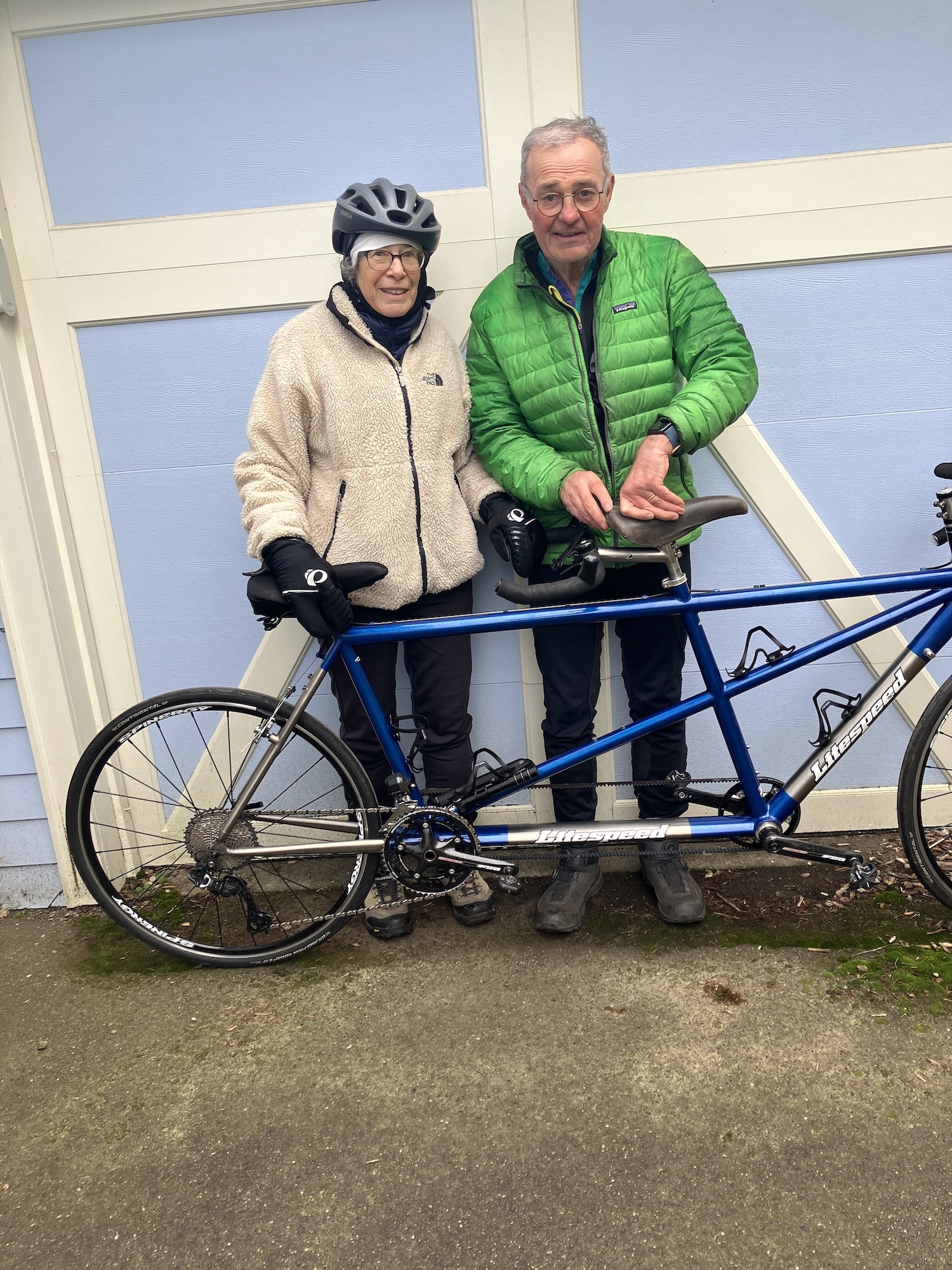1/15 – Interurban to 92nd to College to NSCC Bridge / 100th to 5th to 105th to 8th to Northgate to Roosevelt to Pinehurst / 15th to 135th to 25th to 147th to 27th to 155th to 33rd to 156th to 37th to 165th to the Burke Gilman to Ravenna to 58th to 20th to 62nd to Brooklyn to Ravenna to Green Lake PBL (clockwise) X-2 to Green Lake Drive N to 83rd to Greenwood / Phinney to 62nd and home on 1st Ave. NW. Here’s the map. 28 miles on the Litespeed tandem with Odette