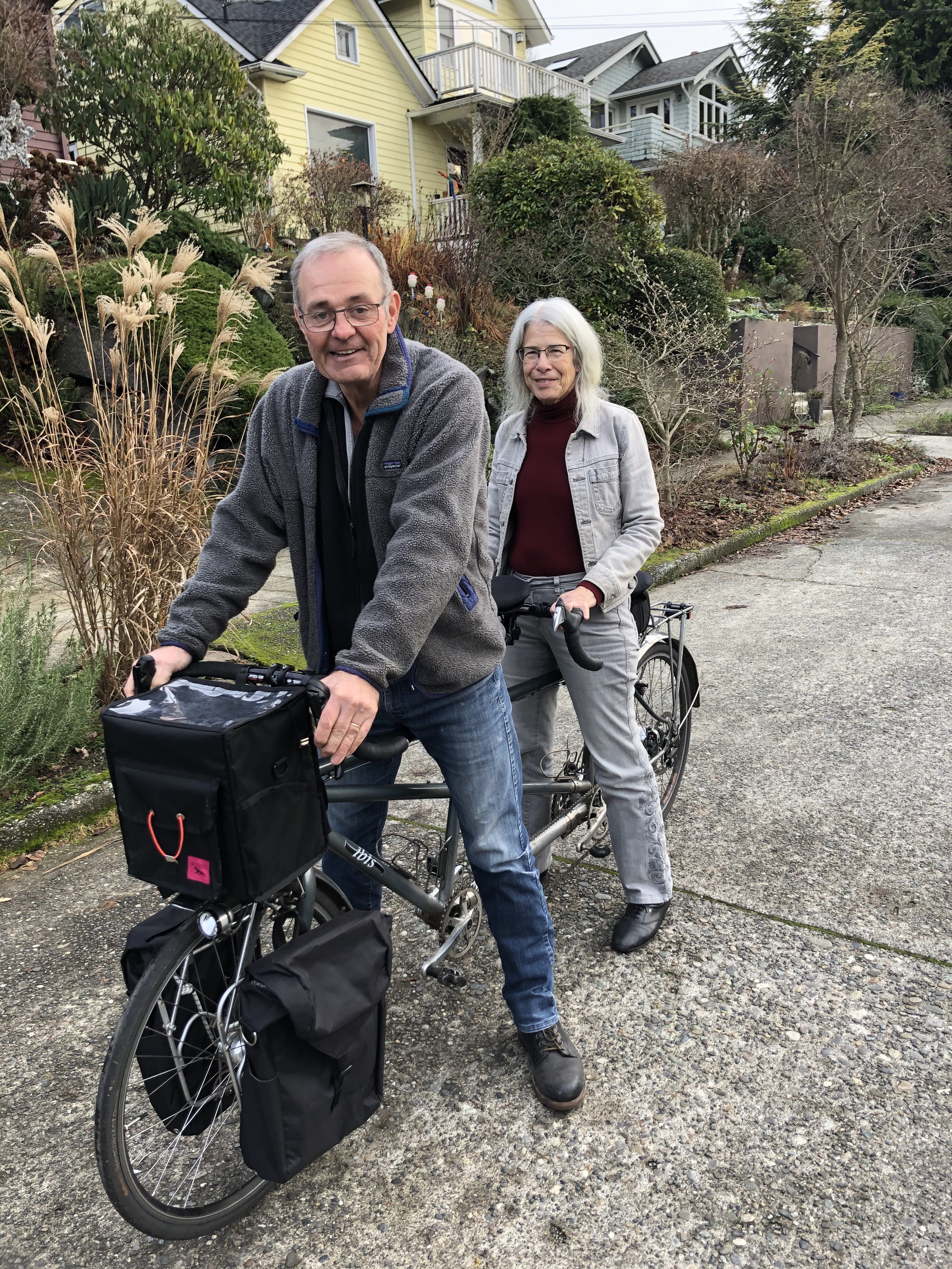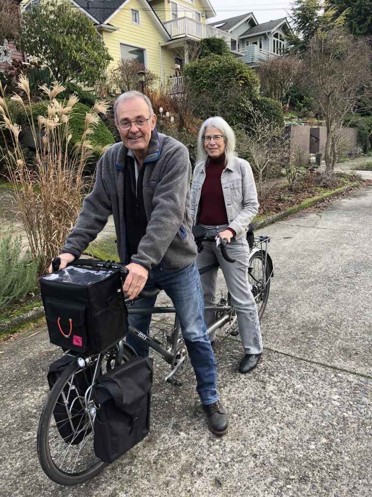 12/22 – 1st Ave. NW to 73rd to 8th to 80th to Loyal and down the hill in Golden Gardens. Burke Gilman to 34th to Wallingford to 46th to Meridian to Kenwood to Greenlake to 83rd to Greenwood and home on 62nd. Here’s the map. 15 miles on the Tandem with Odette